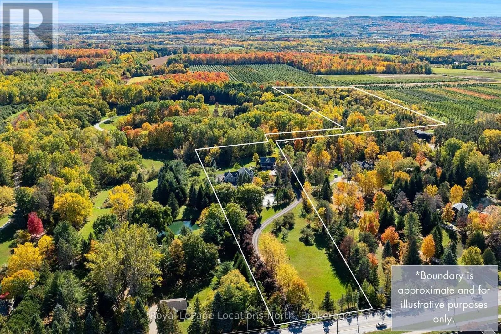 Welcome to an extraordinary 14.95-acre country estate that defines luxury living in the heart of Collingwood. Just minutes from downtown yet surrounded by the serenity of nature, this remarkable property offers a harmonious balance of elegance, privacy, and lifestyle – an idyllic retreat for those who value space and sophistication. A picturesque maple-lined driveway winds through the property, leading to