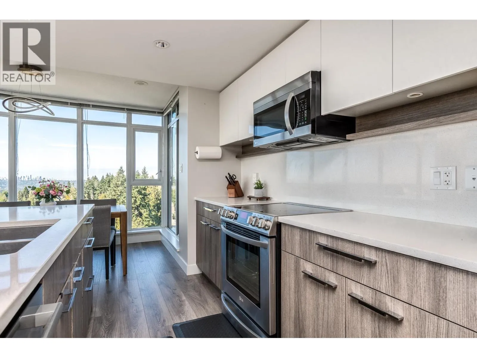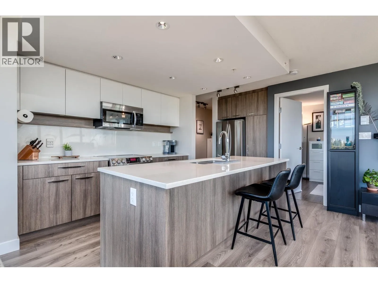Welcome to The Austin by Beedie Living. A stunning 2 bedroom, 2 bath home offers the building´s most desired floorplan with laminate floors throughout and a bright open layout framed by floor-to-ceiling windows in the great room. Enjoy two private balconies with unobstructed views of the Fraser River, Burnaby, and Vancouver. The suite includes two full bathrooms, one secure parking