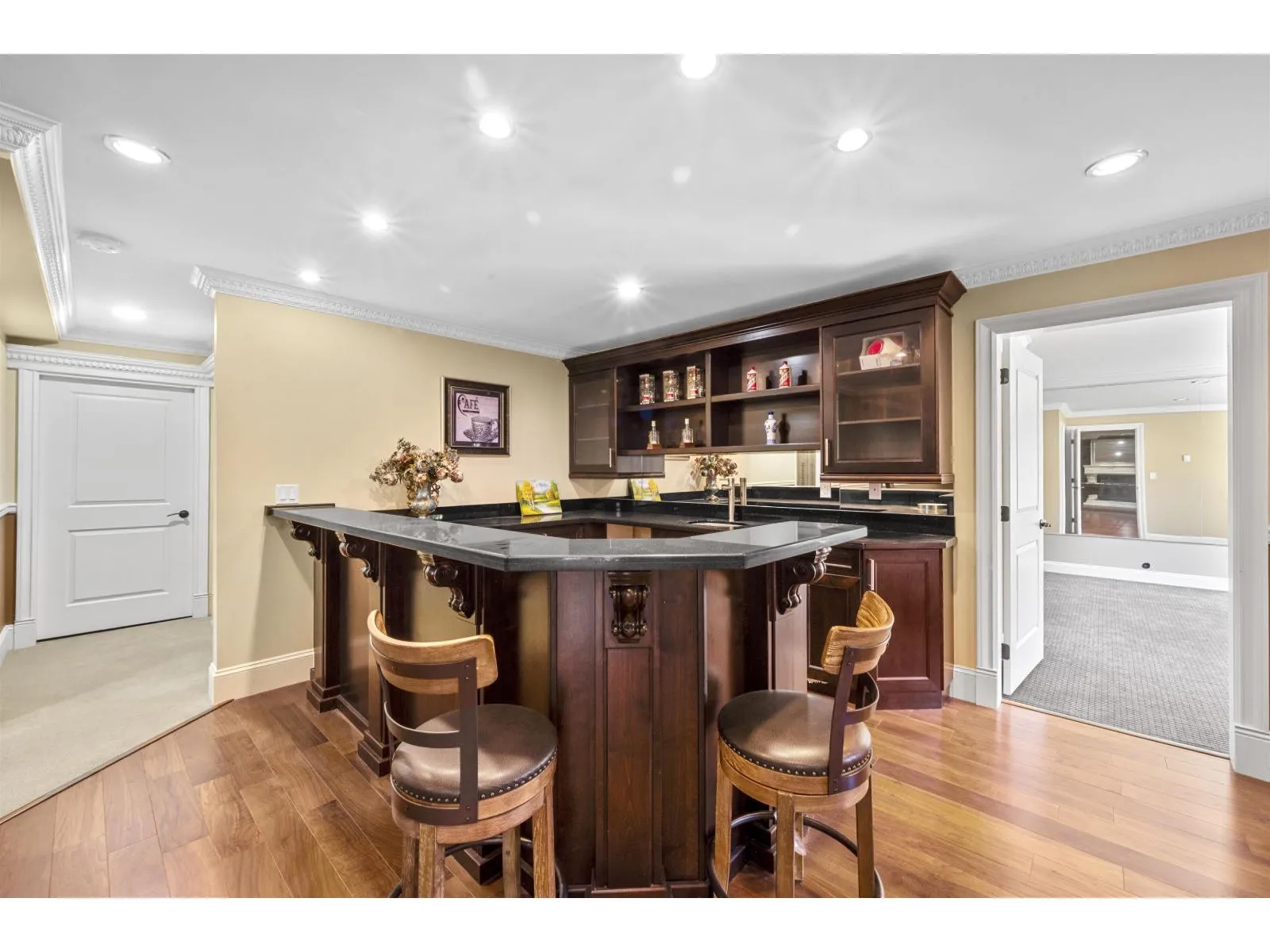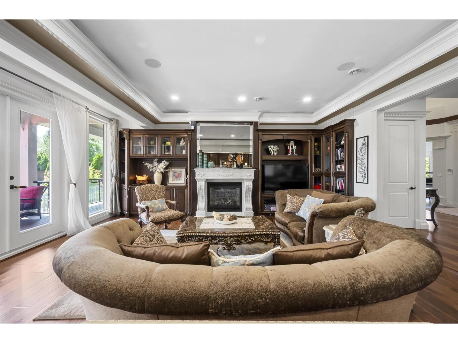 Muster Piece, Magnificent Brick Mansion situated on Morgan Creek’s most exclusive locations. Gated and professionally manicured 1/2 Acre property with Southern back yard, this 7,632sqft Estate boasts grandeur and class! Soaring Ceilings, Extensive Millwork, Rich Hardwood Floors and every luxury amenity desirable. Living & Dining Rooms for formal entertaining flow into the Great Room along the back of the home.