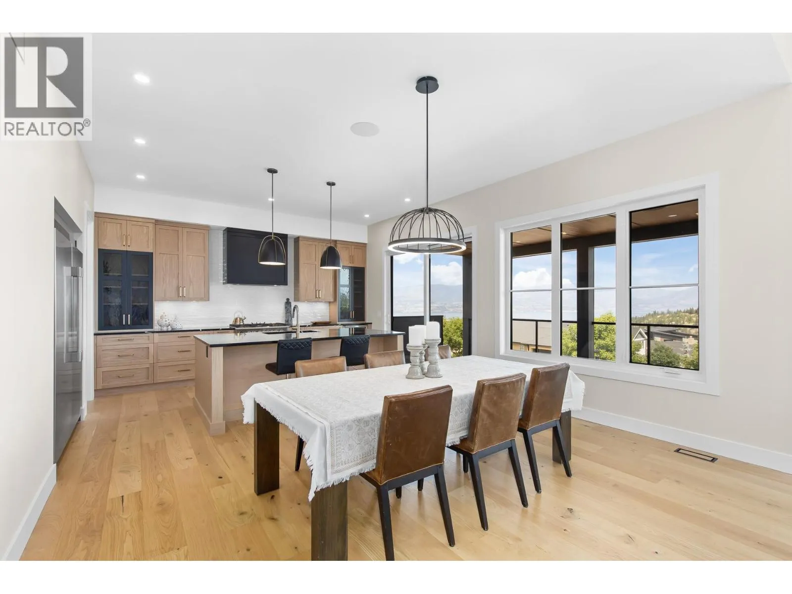 Welcome to this brand-new Scandinavian-inspired contemporary home in the Upper Mission, blending modern design with breathtaking lake, city, mountain, and valley views. Spanning 3,443 sq. ft. over three levels, this 4-bedroom, 3.5-bath residence offers a bright, open-concept layout ideal for families or entertaining. The main floor features a spacious living and dining area framed by triple-pane windows, a sleek kitchen