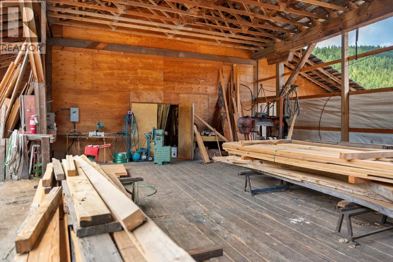 Incredible business and homestead opportunity! Discover the perfect blend of work and relaxation at this remarkable property, boasting the renowned Boards by George Sawmill, a thriving business with a 43-year legacy. Situated on 33 expansive and flat usable acres, this real estate gem offers endless potential. Nestled alongside the Lardeau River, this property presents a 4-bedroom, 1-bath home, and sawmill
