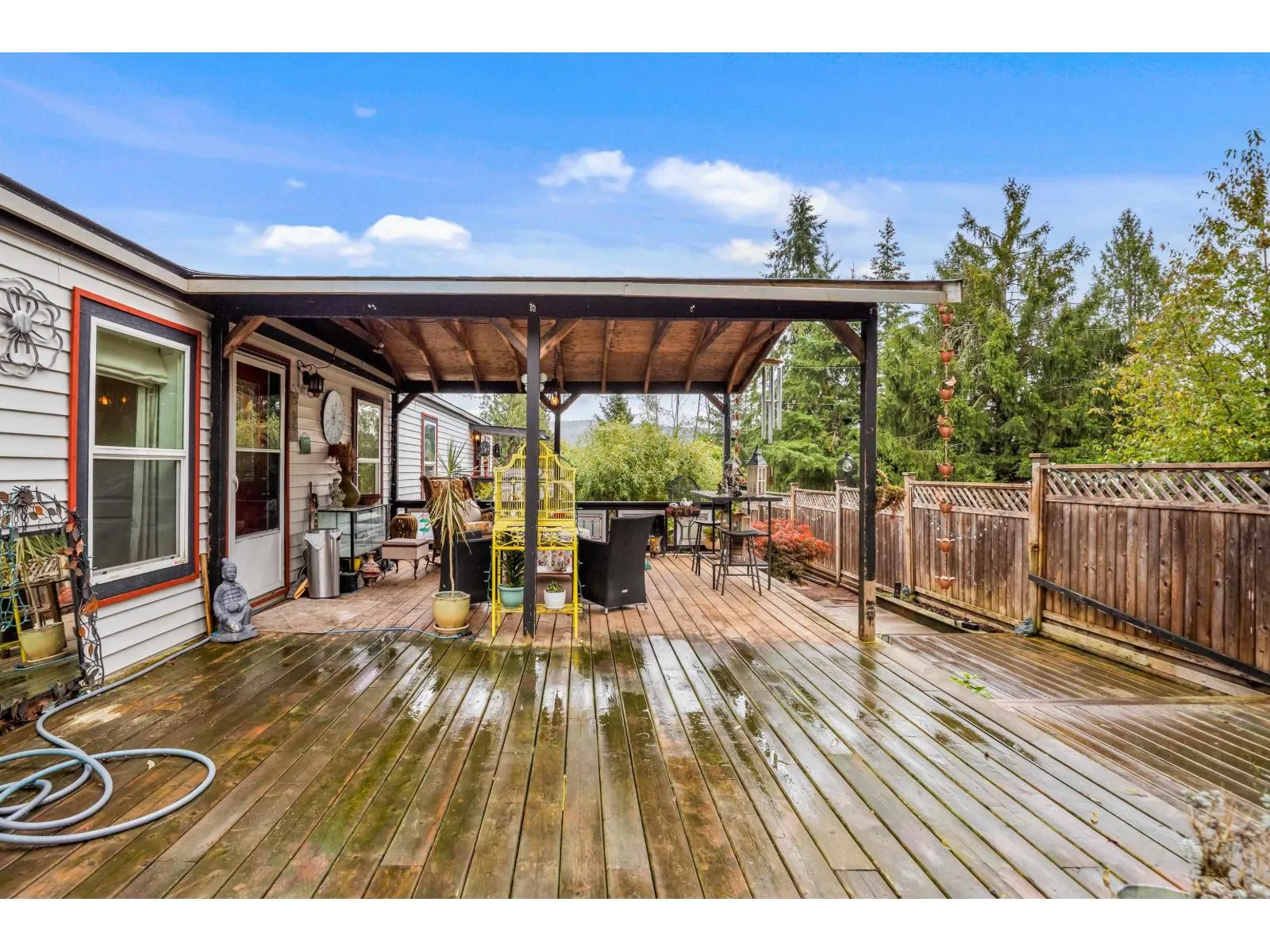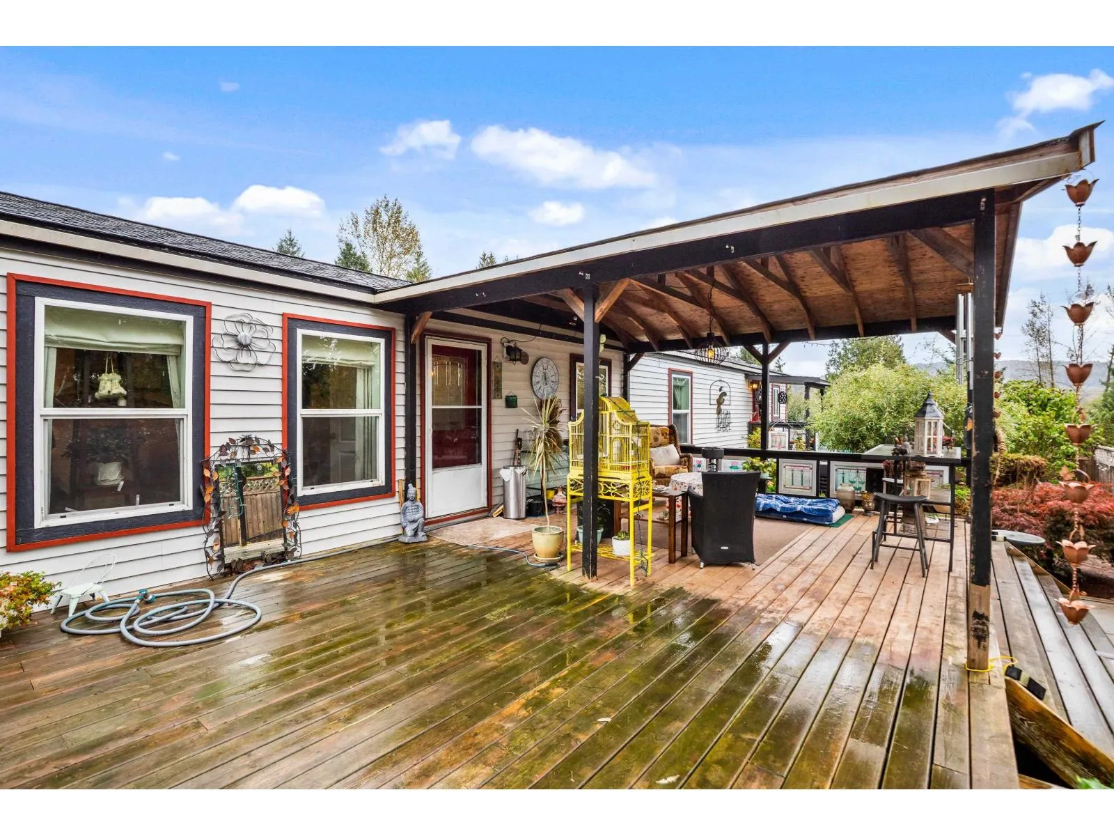 Welcome to Triple Creek Estates-one of Mission’s most desirable parks & Pet Friendly, just minutes from Maple Ridge! This 3-bedroom, 2-bath home is a gardener’s dream, filled with unique and exotic trees and plants that create a lush, peaceful retreat. It features a large, private, fully fenced yard and an impressive 750+ sq. ft. partially covered patio-perfect for outdoor living
