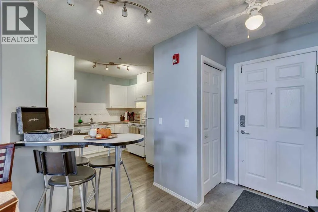 Welcome to Unit 305 at 7 Harvest Gold Manor NE—an exceptional top-floor home that stands out as one of the best in the building – only one direct neighbour! This bright and airy unit is defined by its soaring vaulted ceilings and a stunning wall of windows that fill the open-concept living space with natural light.Step inside to discover a