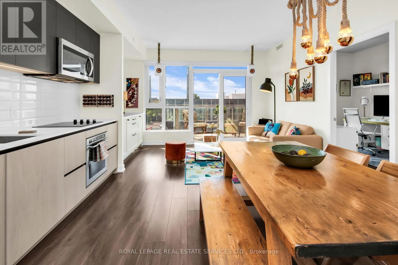 In prime Leslieville, this unique unit was part of the recent conversion from the previously historic Weston Bakery. Featuring an exceptional layout with 2+1 bedrooms, 2 bathrooms & 856 interior SqFT. The very bright living area includes floor to ceiling windows, a B/I bar for additional storage, custom electric blinds & walk-out to a south facing balcony. Modern kitchen with