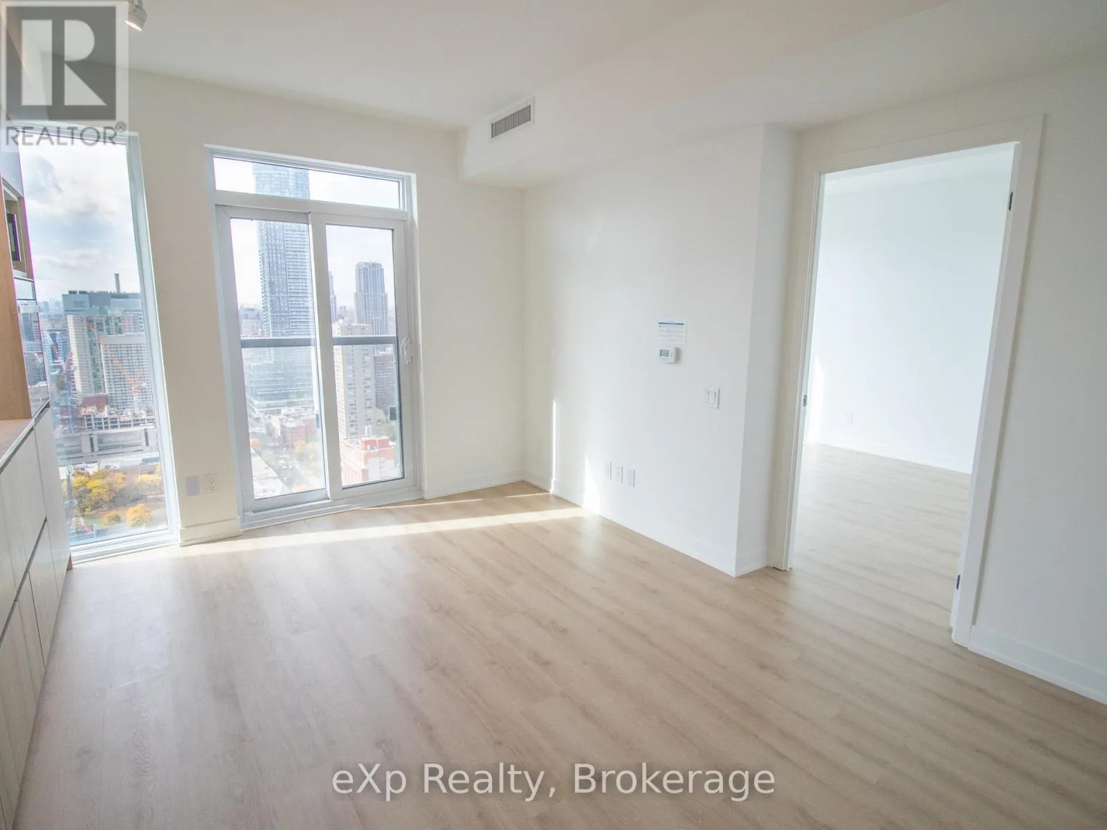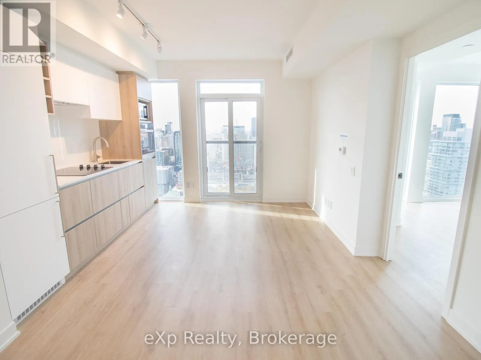 Experience luxury living in this new 1-bedroom, 1-bath suite featuring 9′ ceilings, light wood floors, and floor-to-ceiling windows that flood the space with natural light. The open-concept living area offers a bright and airy atmosphere with stunning city views, while the designer kitchen boasts sleek cabinetry, built-in stainless-steel appliances, stone countertops, and an undermount sink. The spacious bedroom includes a
