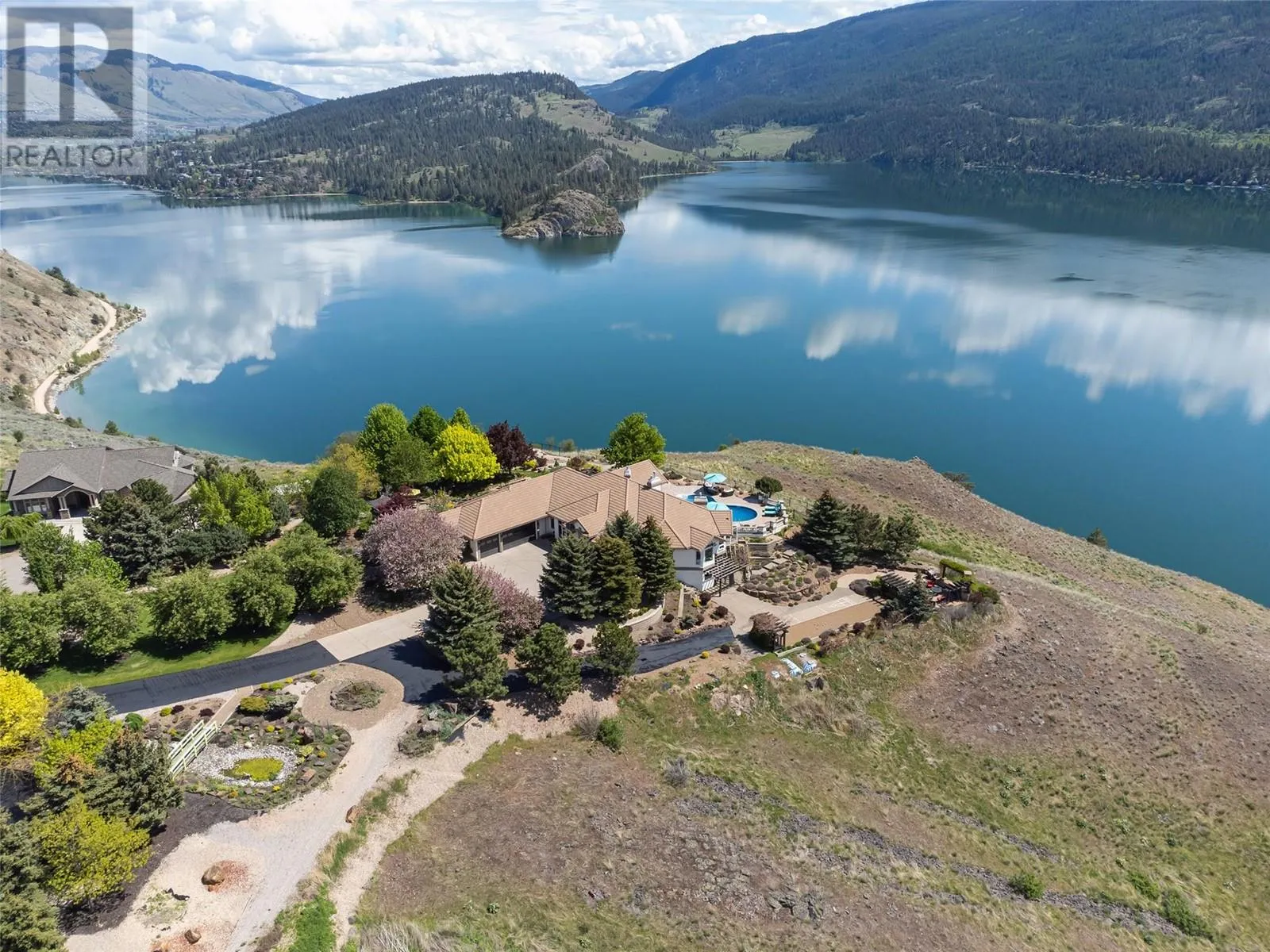 From the moment you arrive, breathtaking lake views and surroundings. A park like setting offering luxury and privacy with 180 degree unobstructed views of Kal Lake. Find yourself relaxing in many of the patio areas overlooking the lake. Sprawling 4 bed. 4 bath Rancher with views and patio doors in every bedroom. Tuscan inspired design