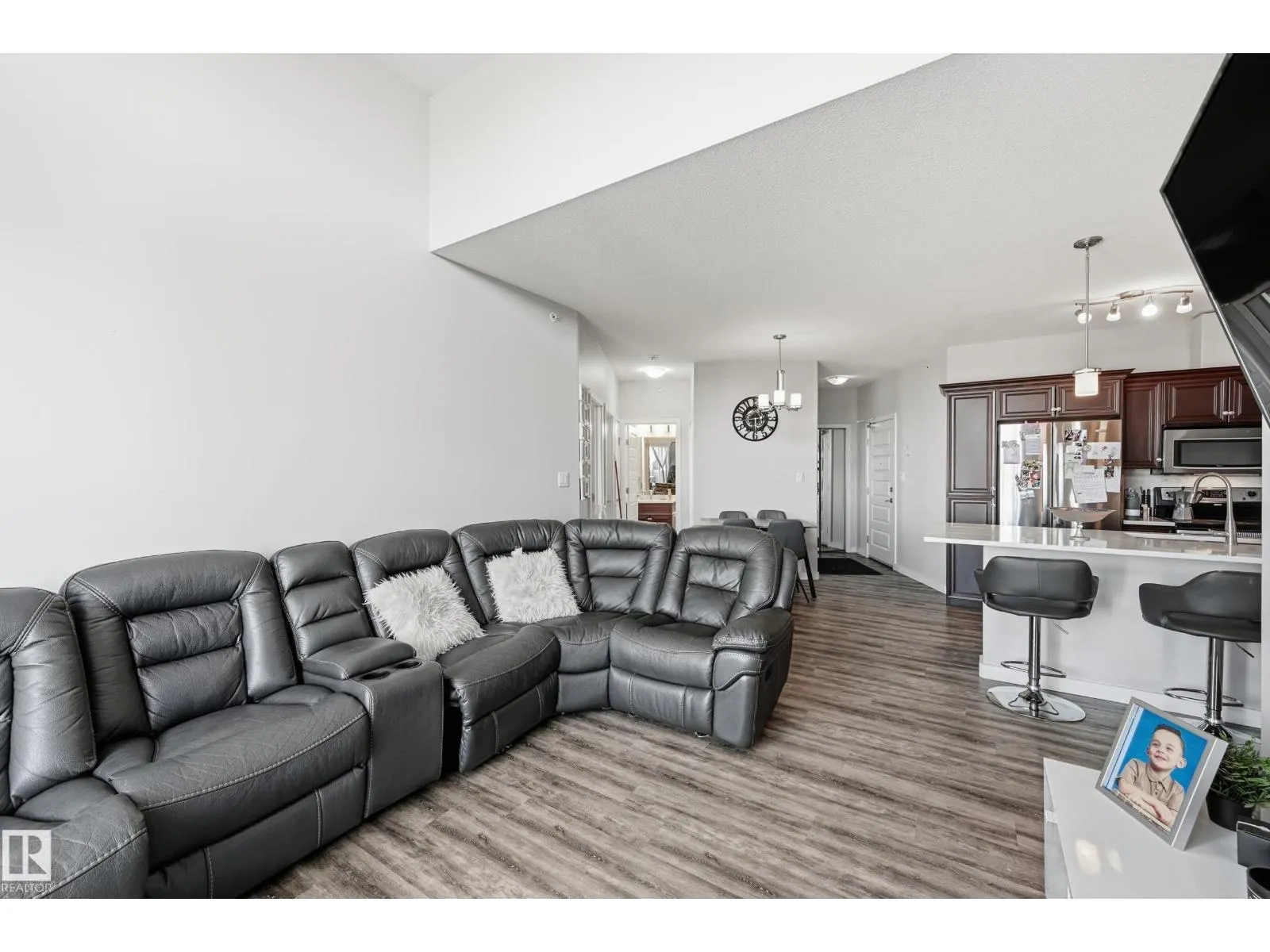 Luxurious Top Floor Executive Corner Unit with 2 Beds Plus Den, and 2 Parking Stalls. Welcome to L’Attitude Studios where modern design meets executive living! This rare top-floor corner unit offers an open-concept layout with Soaring 12-ft ceilings in the living room, 9-ft ceilings, and floor-to-ceiling windows that flood the space with natural light. This home is loaded with upgrades