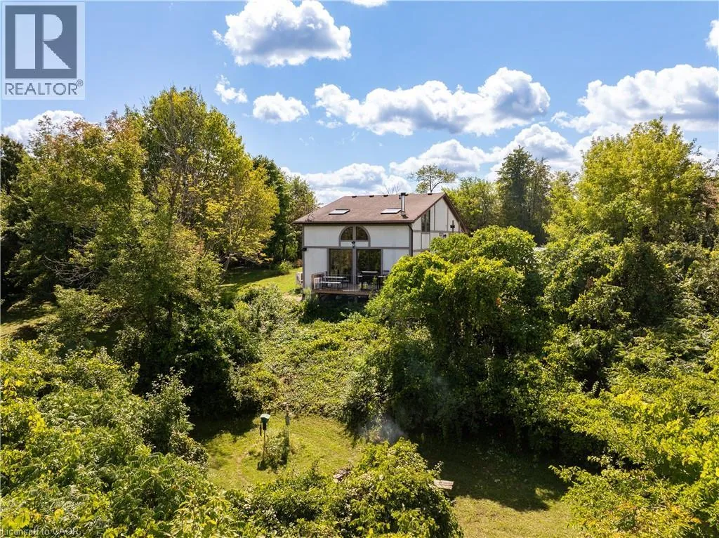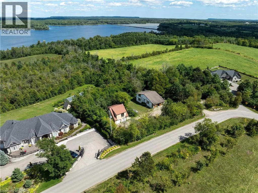 UNINTERRUPTED WATER VIEWS AWAIT YOU! Nestled atop one of the highest points in Puslinch and just minutes from the charming Campbellville equestrian community, this unique opportunity invites you to either build your dream home (initial drawings and survey available)or reimagine the existing structure on a generous 1-acre lot (225 x 194 feet). Experience a beautiful nature sanctuary with stunning views