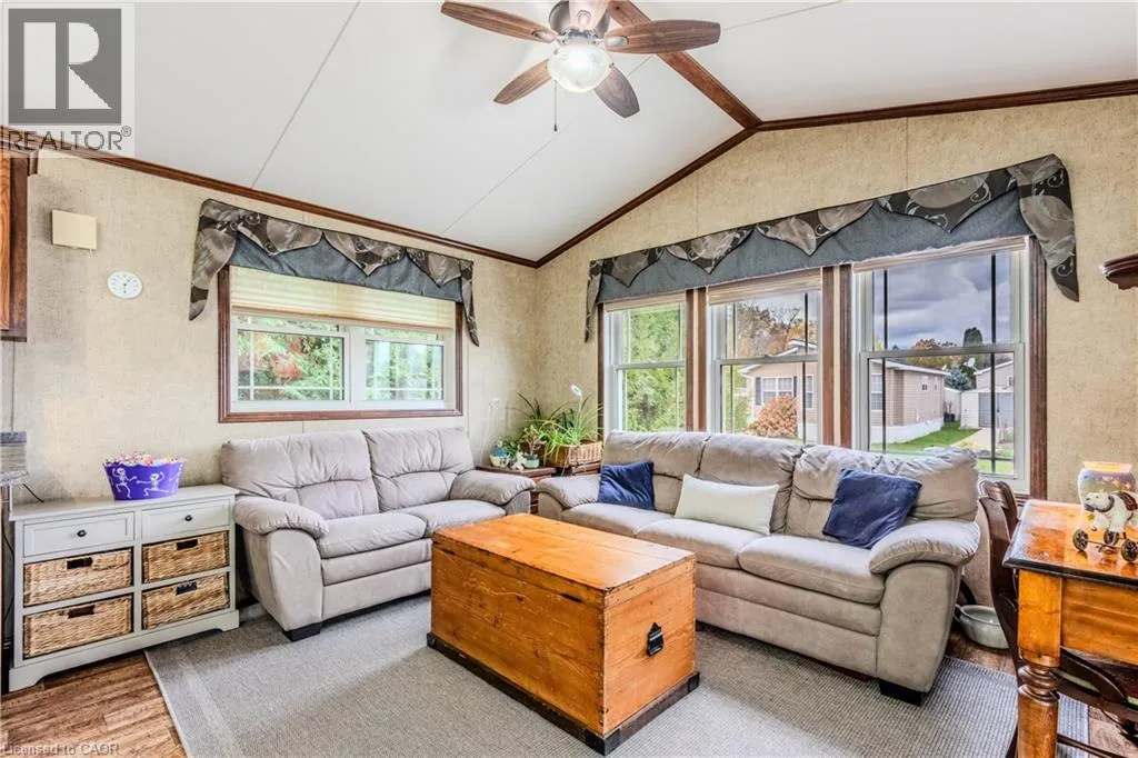 Sharp home, move in condition, in Burlington’s highly desired Lost Forest Park with secure gated entry. Located just minutes from Memorial Park in the Village of Waterdown. 1 bed, 1 bath, Home features a spacious family room with an abundance of windows. Large eat-in kitchen with quality cabinetry, flooring, appliances, and plenty of room for dining. Off family room