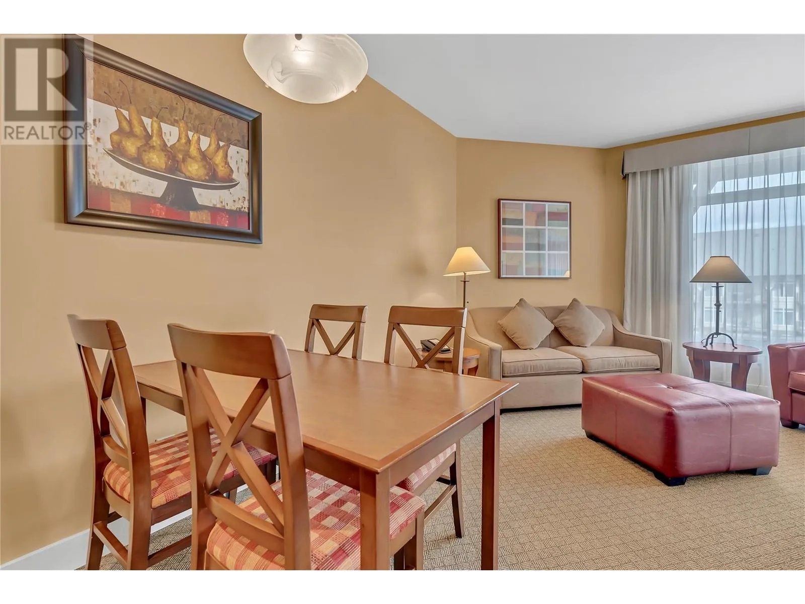 Welcome to Summerland Waterfront Resort! Experience the dream of a lakeside vacation home with this stunning unit located on the shores of Okanagan Lake. This beautifully appointed 2 bed 2 bath suite offers breathtaking lake views, modern amenities, and a serene atmosphere perfect for relaxation or adventure. Features include a spacious living area with large windows showcasing lake and bluff