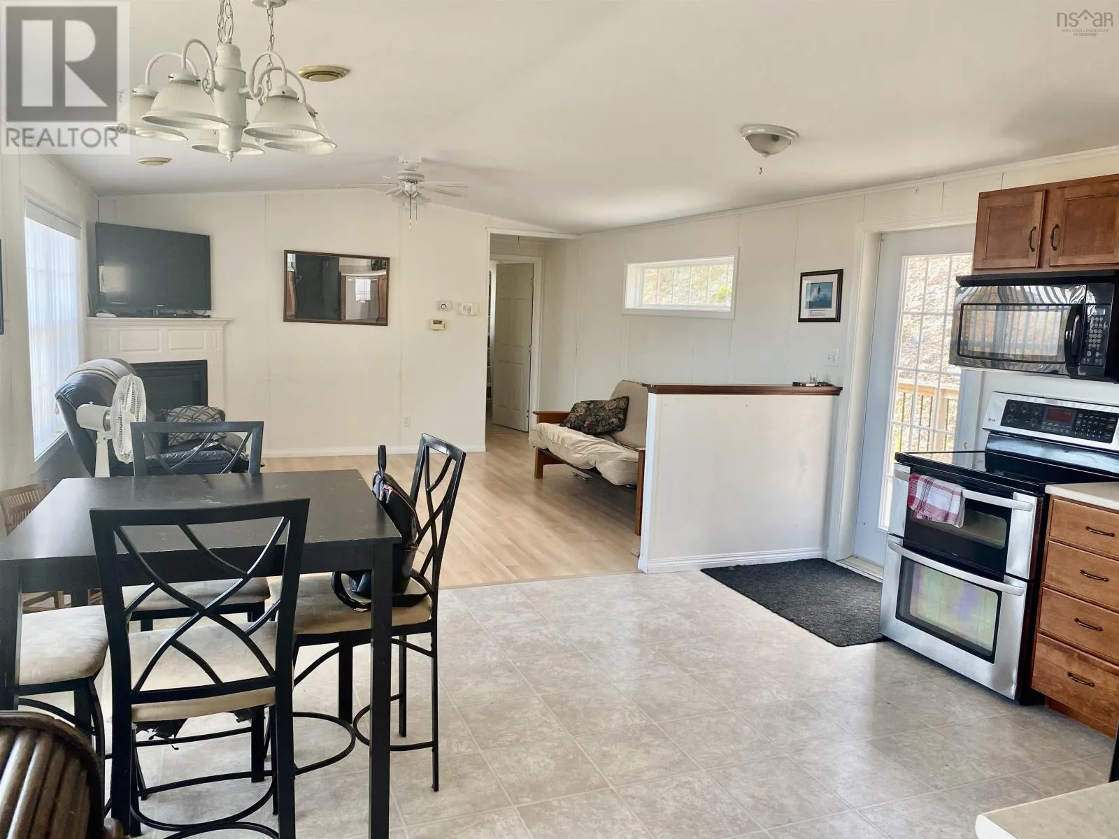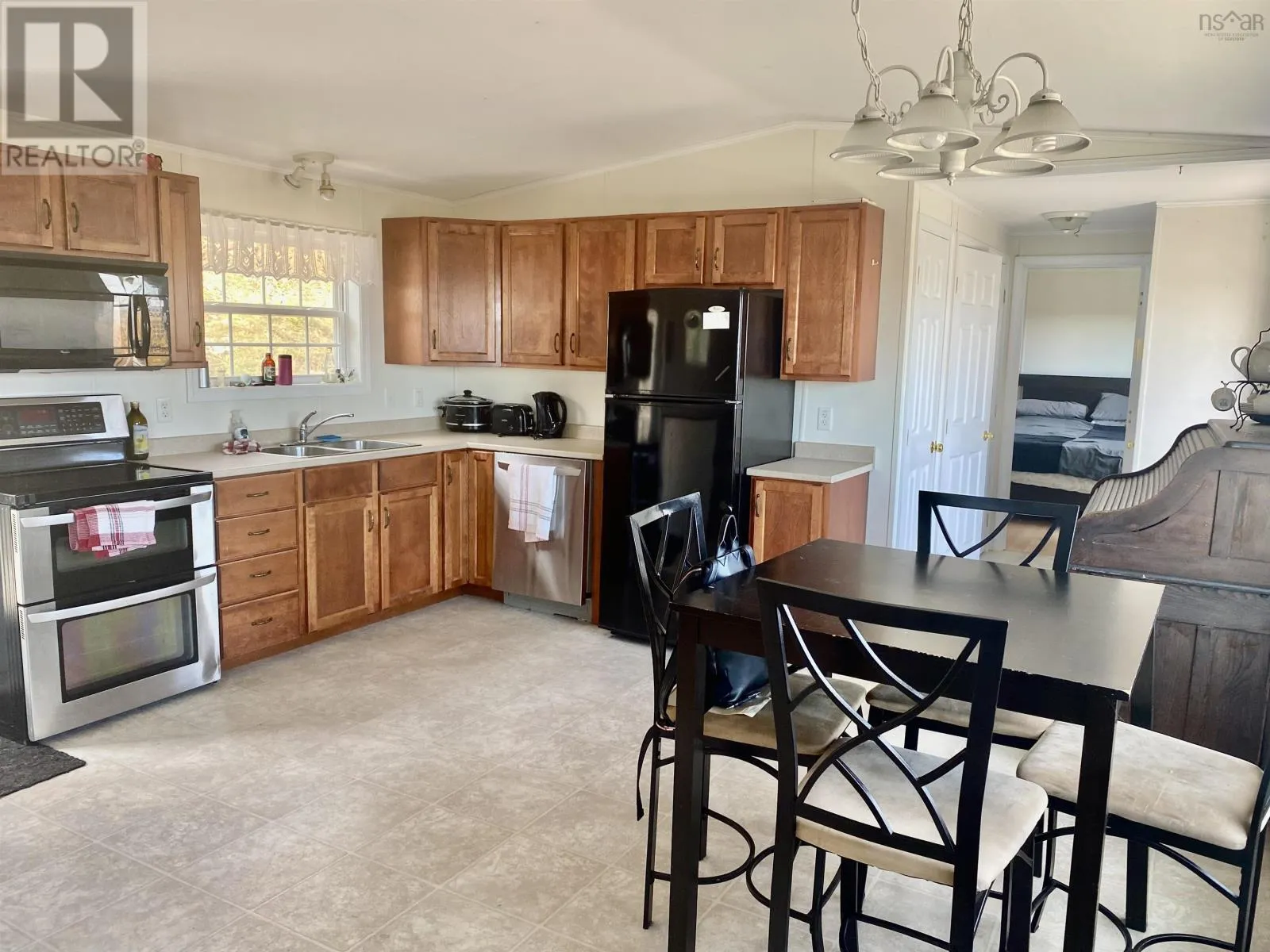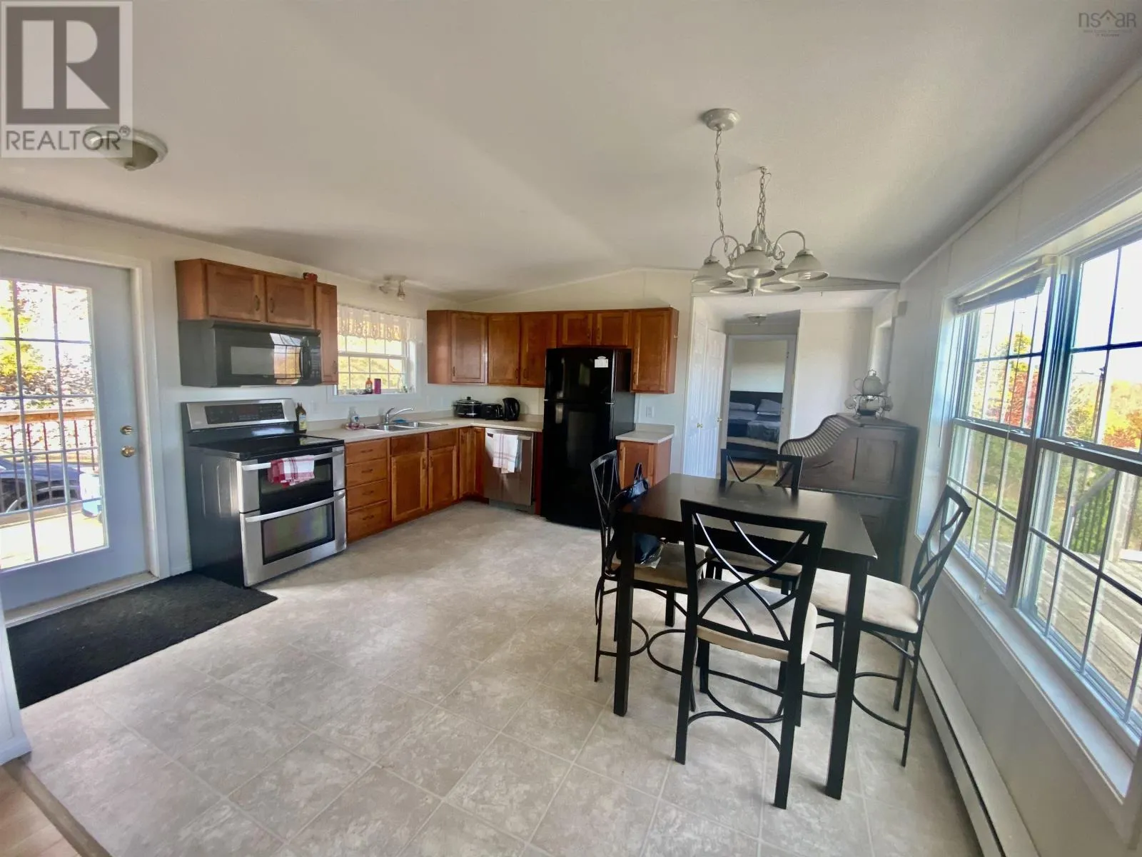 This 2 BDRM, 2 BATH mini home is perched on a hill overlooking the beautiful Bras d’Or Lakes, and sits on 30 Acres of land. This 16×60 Maple Leaf home was built in 2009, and has a large 3/4 wrap around deck built in 2015, along with the 20×17 detached wired garage. 8×8 shed for extra storage. Plenty of