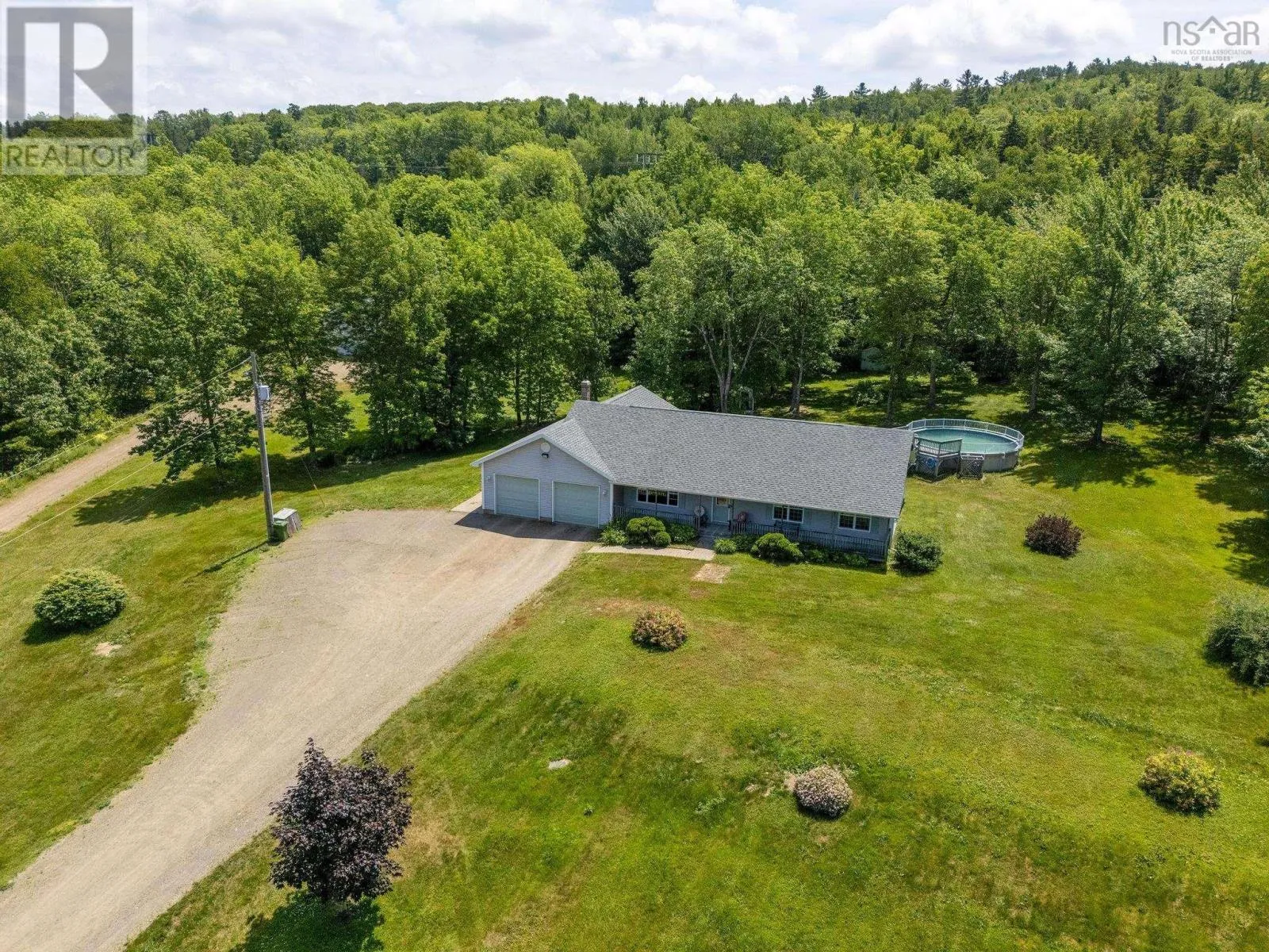 Welcome to this spacious rancher on slab with in floor heat and located on a 5 acre lot in Gaspereau Valley. Ideally set up for business/ hobby farm or just enjoy the idyllic, private country living and only minutes drive from Wolfville. The home features 2,038 sq. ft of finished living space with open concept KIT/DIN/LIVINRM/FAMRM including Oak kitchen cabinets;