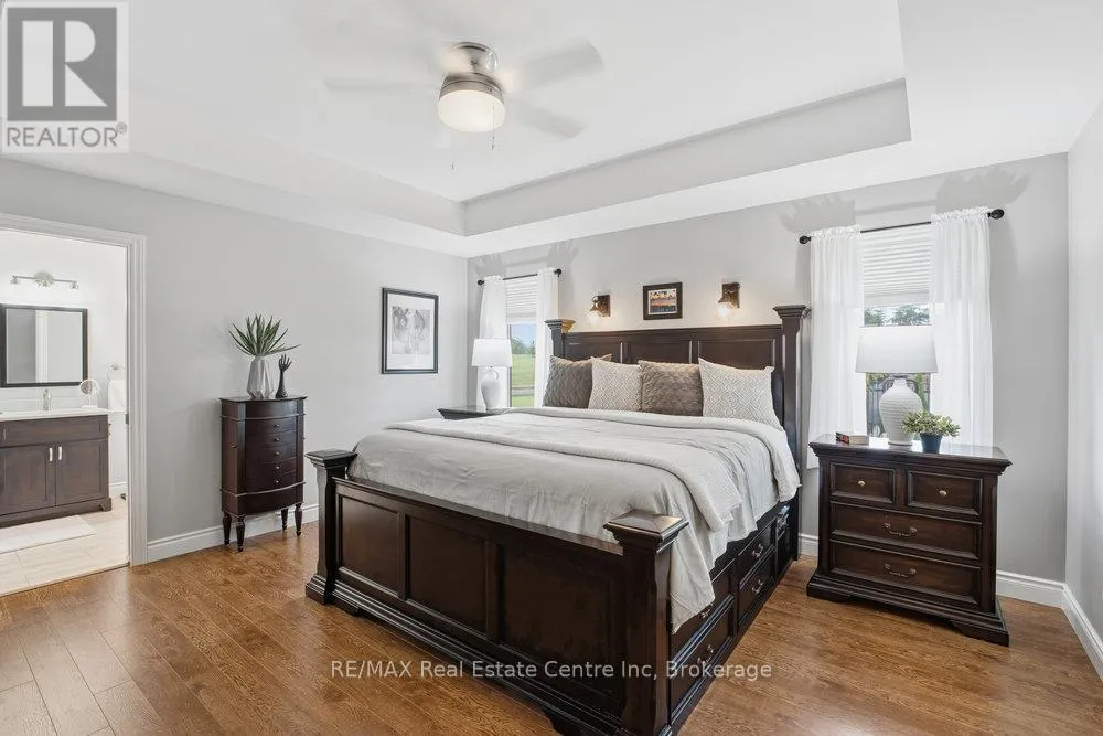 featuring a double-door pantry, Italian pot filler, and under-island garbage bins -beautifully blending function and design. The mudroom offers custom cabinetry and convenient direct garage access. The primary bedroom is a true retreat, showcasing a coffered ceiling, custom reading lights, and a luxurious 5-piece ensuite with a walk-in shower and free-standing tub. The second bedroom is currently used as a home office, offering flexibility for your lifestyle. A finished basement provides plenty of additional living space, including two additional spacious bedrooms, a home gym complete with sauna, and a 4-piece bathroom-ideal for guests or family. Step outside to your own private oasis: a covered lanai, on-ground pool, and hot tub create the perfect setting for relaxation and entertaining – all fenced and landscaped to provide the ultimate in privacy. This property truly offers the best of country living with refined style and comfort -an exceptional opportunity in beautiful West Grey. (id:59439)