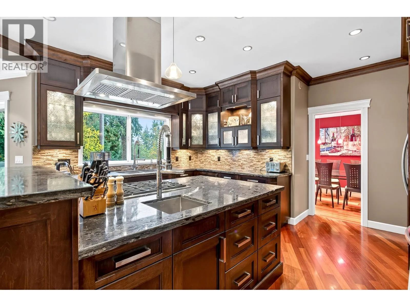 Paradise Awaits! This residence showcases exquisite, top-tier craftsmanship and bespoke luxury from top to bottom. Experience rich Brazilian Cherry hardwood with elegant Walnut inlays, complemented by chiseled-edge granite counters, custom cabinetry, and premium-grade appliances, all illuminated by abundant natural light streaming through expansive windows. An ideal family haven featuring 5 bedrooms and 4 bathrooms. The grand primary suite opens to
