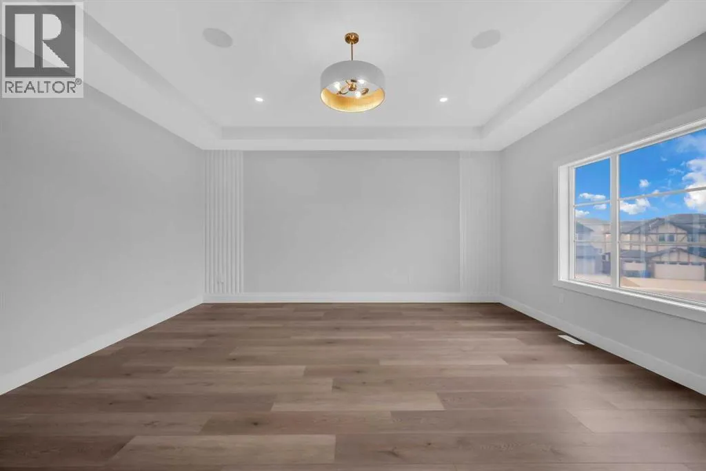 +"PublicRemarks": "Welcome to 303 Kinniburgh Loop – a stunning 2,648 SQFT Golden Homes masterpiece offering 4–5 bedrooms, 4 full bathrooms, and exceptional craftsmanship throughout.As you enter, you’re greeted by a grand open-to-below foyer, setting the tone for the luxury and spaciousness found in every corner of this home. The main floor features a full bedroom with direct access to a 3-piece bathroom with a standing shower — perfect for guests or multigenerational living. You’ll also find a private enclosed office, which can easily serve as a fifth bedroom if needed.At the rear of the home, the layout opens into a bright and inviting living space, featuring a large living room with an electric fireplace and oversized triple-pane windows that flood the space with natural light. The gourmet kitchen is a showstopper, equipped with high-end Samsung stainless steel appliances, quartz countertops, full-height custom cabinets, black hardware, an oversized island, and premium finishes throughout. For everyday convenience, the home also includes a fully equipped spice kitchen.The main floor is completed with true 9' ceilings, 8' doors, luxury vinyl plank flooring, a side entrance to the basement, soft-close cabinetry, upgraded triple-pane windows, and a spacious coat closet.Upstairs, you’ll find two primary bedrooms, each with its own ensuite and walk-in closet. The main primary suite offers a large 5-piece ensuite with an enclosed toilet, full wall tile, and a spacious walk-in closet with upgraded MDF shelving. The second primary bedroom includes a 3-piece ensuite with a standing shower and its own walk-in closet. A third generously sized bedroom also features a walk-in closet and easy access to a nearby 4-piece bathroom.The upper floor is completed with a large bonus room and a full laundry room, finished with quartz countertops, a sink, and tiled flooring.As with all Golden Homes builds, this home comes fully loaded with premium standards including landscaping with full lot g rading and loaming, sod to the side entry, and a front-yard tree; true 9' ceilings on both the main floor and basement; tall 8' doors on the main floor; a side entrance; a front door with a built-in window; a mosaic tile shower base; no dropped beams; oversized triple-pane windows; matte black iron spindle railings and hardware; upgraded MDF shelving; upgraded carpet underlay; a tankless hot water heater; smart home features and appliances; an oversized quartz kitchen island; gas line to the deck for outdoor grilling; full-height painted kitchen cabinets; a fully roughed-in basement with an enclosed mechanical room; a complete HRV system; an electric fireplace; full-height wall tile in the ensuite shower; metal soft-close drawers; solar panel rough-in; tile flooring in all full bathrooms and the laundry room; and gas rough-in for a future garage heater. (id:62650)"
