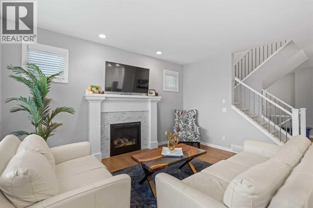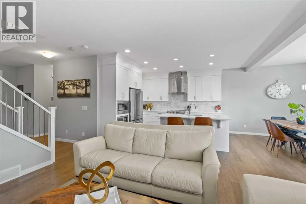 Welcome to this beautifully designed 3-bedroom home on a quiet street in the desirable Riverstone community. Ideally located near the Bow River and scenic walking trails, it blends modern style with family-friendly comfort. Inside, you’ll find a bright open-concept main floor with 9-foot ceilings, 8-foot doors, and oversized windows. The chef’s kitchen features quartz countertops, extended cabinetry, stainless steel appliances,