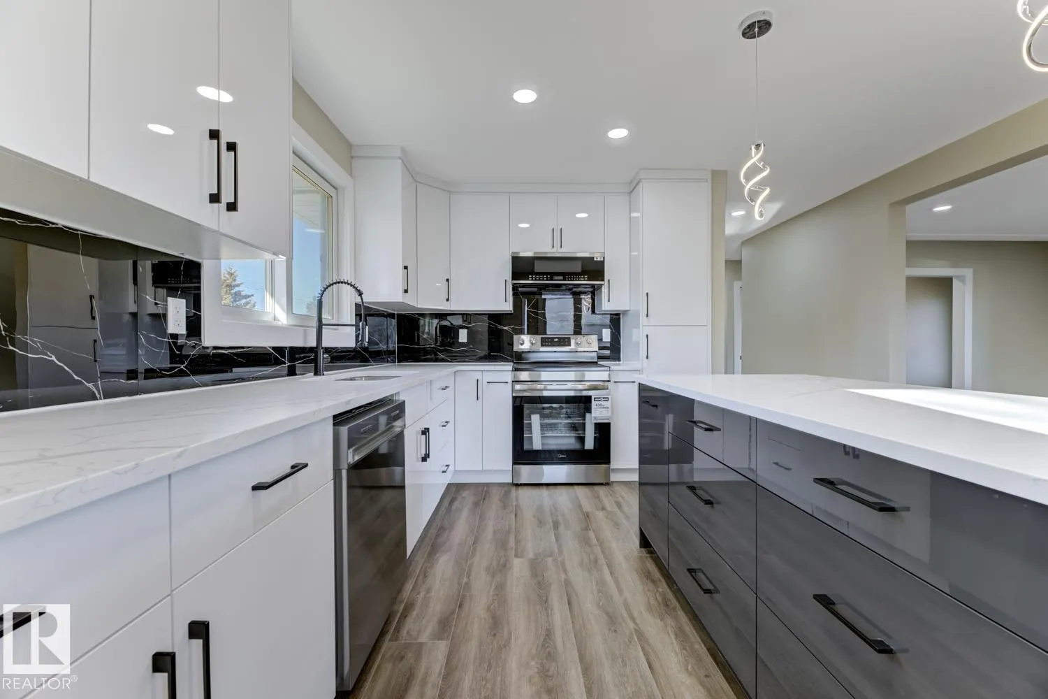 Gorgeous FULLY Renovated Bungalow offers elegance, magnificent living spaces. This home features 1100 SQFT, 4 bed and 2 full baths. Inside the front entry boasts an impressive Open Concept living area, large living room features pot lights and a fireplace The Chef’s Kitchen is outstanding from every angle, showcases tasteful finishes such as Quartz counters, Large Island, custom cabinetry, soft