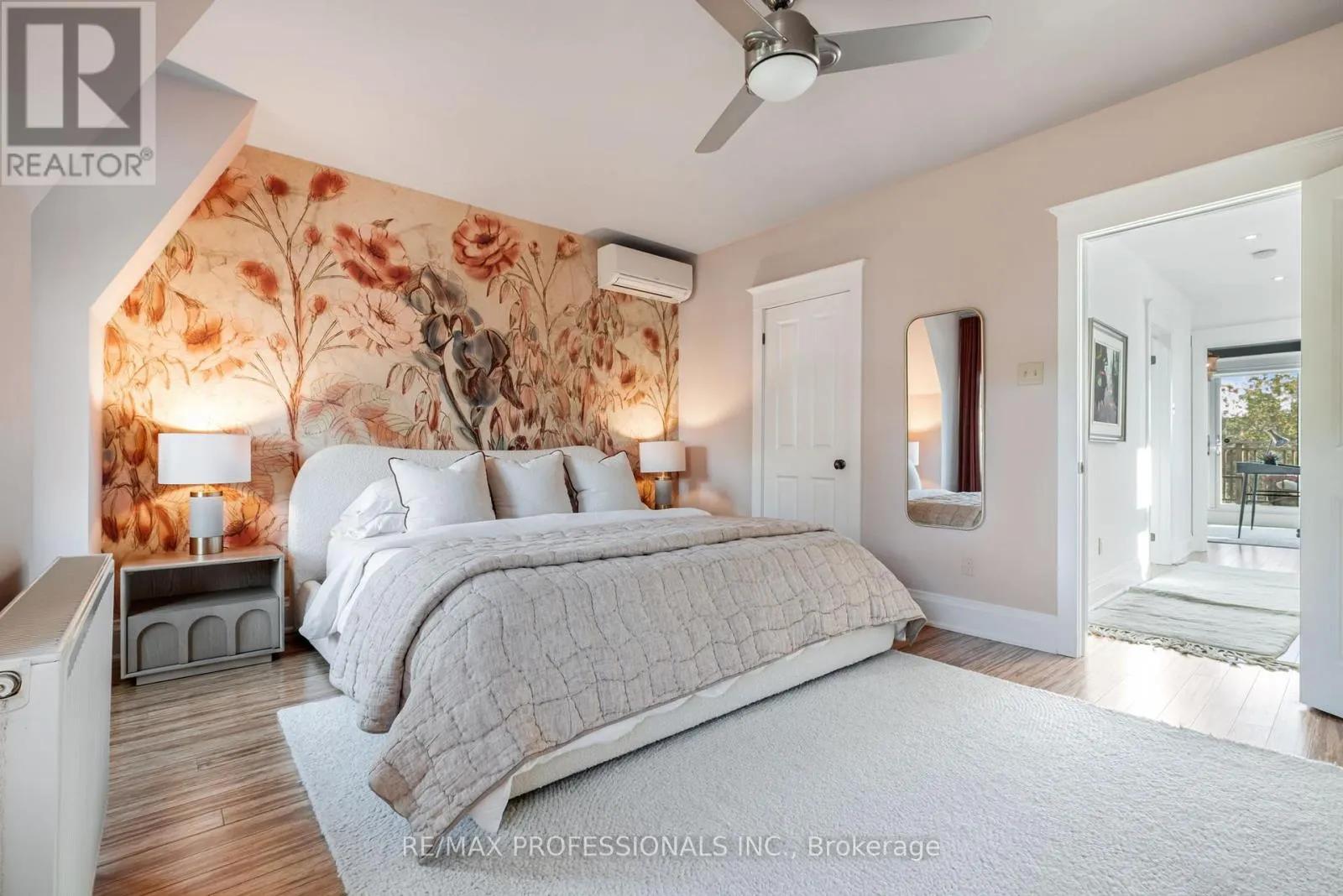 In the Heart of Roncesvalles Village, this masterfully renovated detached home blends designer luxury with everyday comfort. Step inside to a stunning open-concept main floor where custom plastered fluting, seamlessly integrated into the new bio-fuel fireplace, and elegant lighting create an elevated yet welcoming atmosphere. Designer cork wallpaper and custom window treatments add texture and warmth. The chef’s kitchen shines