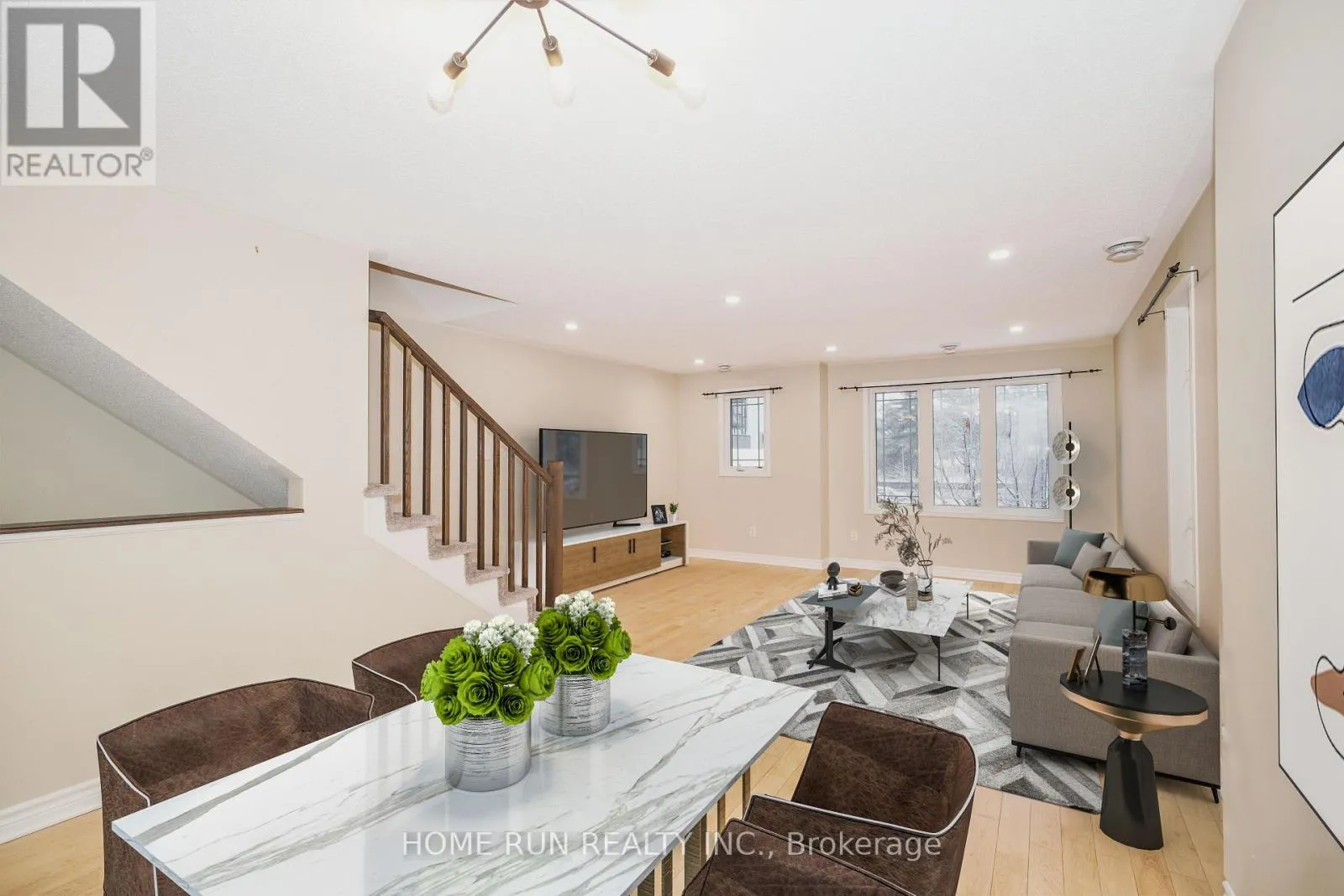 Date Available: Jan 1. Rarely Offered Upper-Level End Unit Terrace Home in Carson Meadows! This bright, modern urban townhome offers a spacious open-concept layout filled with natural light and contemporary finishes throughout. Featuring hardwood floors, brand-new pot lights, and modern light fixtures, this home blends comfort with style. Step inside and head upstairs to the main living level, where you’ll