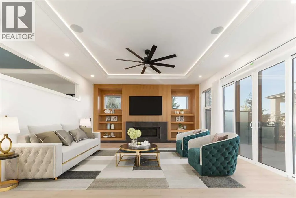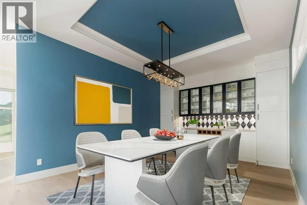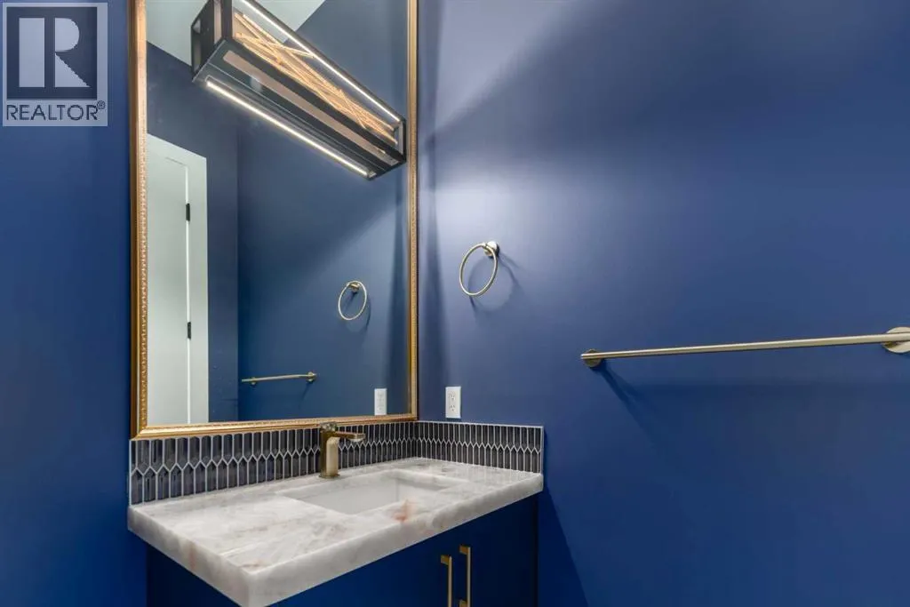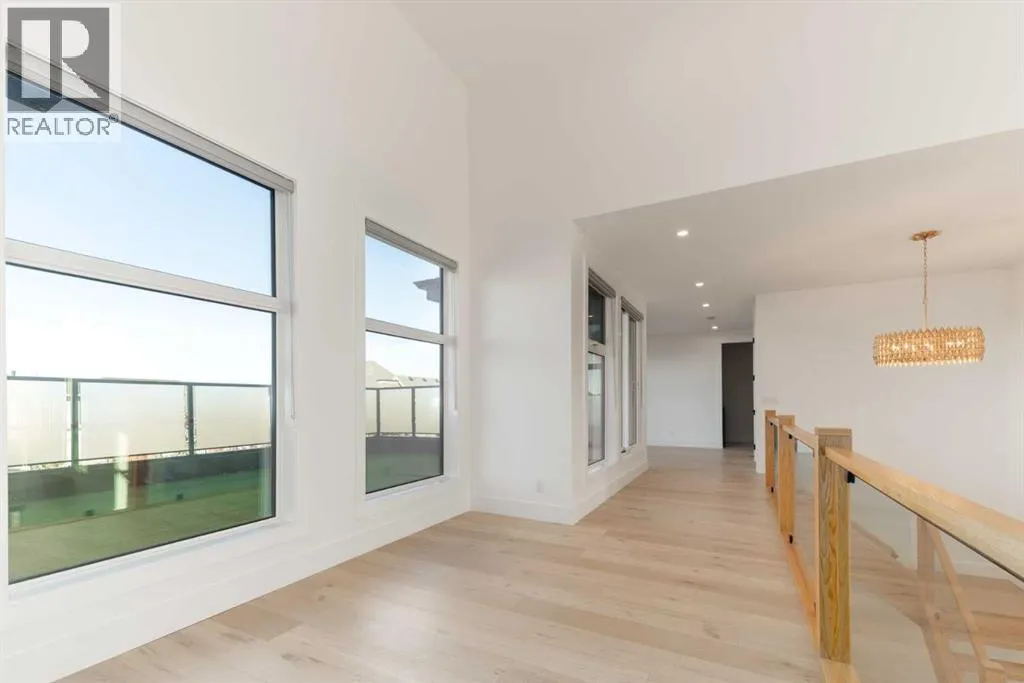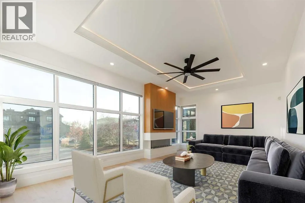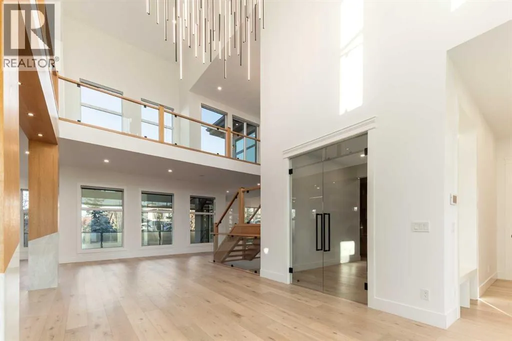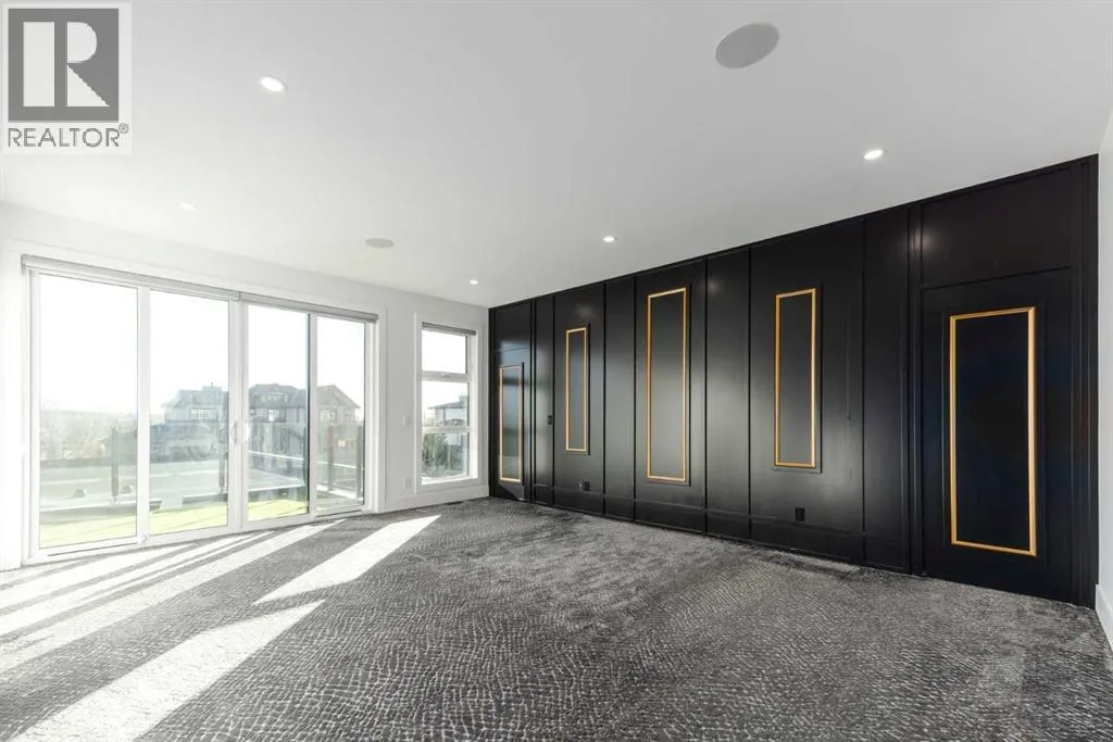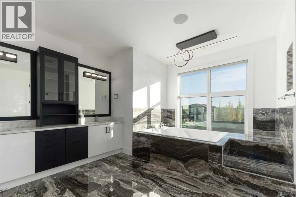 +"PublicRemarks": "OPEN HOUSE THIS SATURDAY NOVEMBER 29TH FROM 1:00PM TO 3:00PM! This modern estate in Calgary’s prestigious Watermark community showcases precision construction, advanced systems, and contemporary design. A heated four-car garage features a durable epoxy floor, radiant in-floor and gas heating, a half bath, and ample space for a workshop or bench setup. Inside, a residential elevator provides full accessibility across all levels, while engineered hardwood flooring, custom millwork, and an open-riser glass staircase define the home’s architectural character. The great room features a tray ceiling with recessed lighting and a linear gas fireplace framed in charcoal tile, blending form and function. The chef’s kitchen is anchored by dual onyx-clad islands, gloss-white cabinetry, brass fixtures, and Jenn-Air professional appliances, complemented by a full prep kitchen with induction cooktop, secondary refrigerator, and dishwasher for seamless entertaining. The formal dining area includes built-in cabinetry, crown detailing, and geometric backsplash, while a front sitting room with a wood-accent fireplace, glass-enclosed office, and powder room with onyx counter and brass accents complete the main level. A well-appointed mudroom offers full-height storage, marbled tile, and a built-in bench for easy transitions. Upstairs, the primary suite includes a private balcony with mountain views, dual walk-in closets, and a spa ensuite with heated floors, dual vanities, steam shower with dual rain heads, and a deep soaker tub. Three additional bedrooms feature walk-in closets, with both Jack & Jill and private ensuite layouts. The upper level also offers a loft, study nook, and laundry room with quartz counters, extending to an outdoor patio finished with glass railings and synthetic turf. The lower level is designed for recreation and fitness, with a quartz wet bar, brass fixtures, beverage fridge, custom shelving, media area, mirrored gym, and two bedrooms with walk-in closets and full baths. Finishes include luxury vinyl plank, recessed lighting, and marbled tile throughout. Mechanical highlights feature radiant in-floor heating throughout the lower level, high-efficiency HVAC, smart lighting controls, and an integrated sound system — combining craftsmanship, durability, and performance in one of Watermark’s most technically refined residences. (id:62650)"