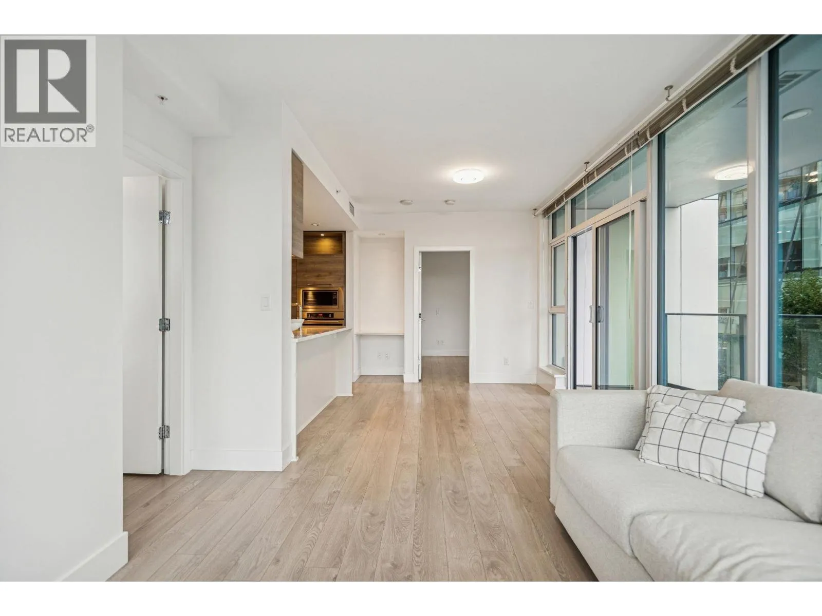 Welcome to your urban oasis at Kings Crossing II, built by local developer Cressey. This bright corner two-bedroom home features floor-to-ceiling windows, 9-foot ceilings, and the Cressey´s signature open kitchen with integrated appliances and quartz counters, including a German brand fridge and freezer, gas cooktop, and smart storage space. Enjoy spa-inspired bathrooms and a spacious balcony that extends your living