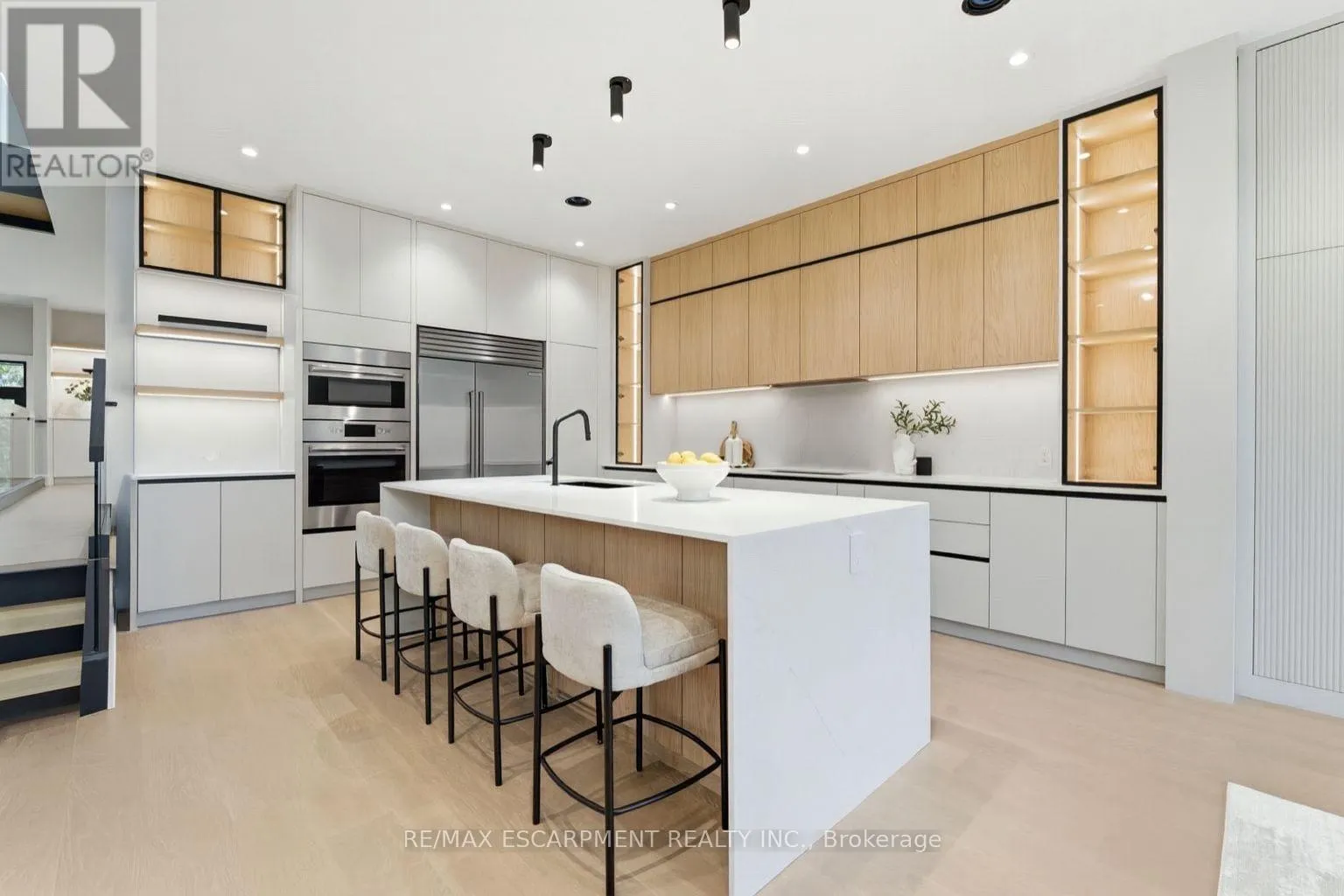 A brand-new custom home by Montbeck Developments, 957 Halliday, exemplifies contemporary luxury and superior craftsmanship in a quiet, tree-lined neighbourhood. This modern residence boasts soaring ceilings, white oak hardwood flooring, and Montbeck’s signature design details throughout. The open-concept main floor showcases a stunning designer kitchen with quartz countertops, a 9-foot waterfall island, and a premium built-in appliance package. Expansive floor-to-ceiling