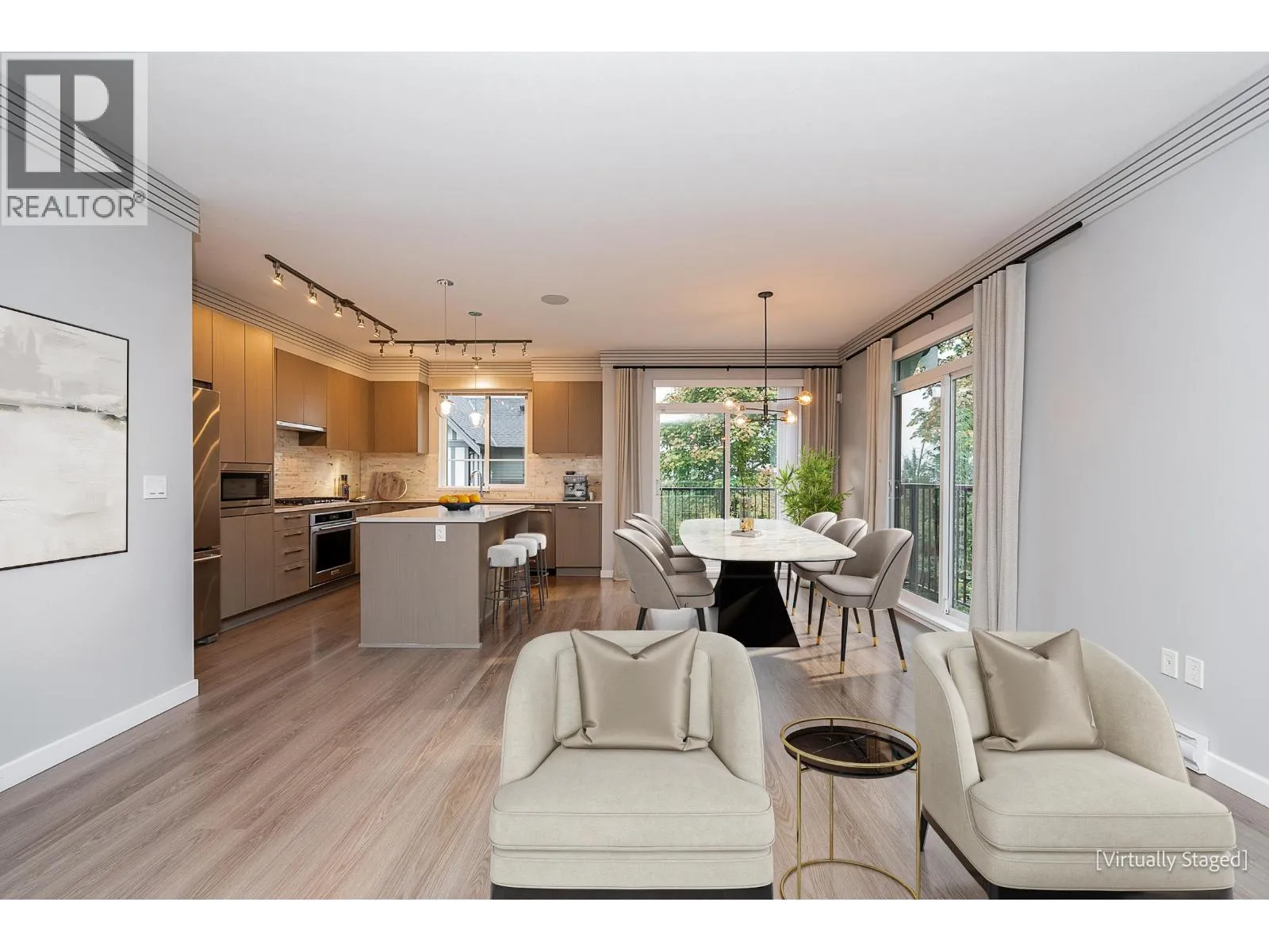 Outstanding opportunity to own this stunning, former SHOW HOME, end-unit at Polygon´s Kentwell. This 1680+ sq/ft, 4 bed 3 bath home is quietly nestled against serene greenery and boasts a beautiful open layout, with designer finishings and plenty of natural light. Designer extras include granite fireplace, custom built-in’s, garage flooring and window treatments. Gourmet kitchen with modern appliances and central
