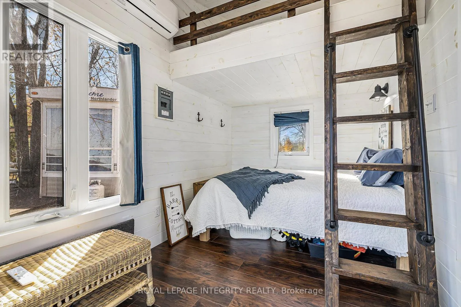 What a spectacular property located in Flintoft Bay on Mississippi Lake. Enjoy the amazing water views while you relax on your deck at the trailer, ro under the covered porch. This 33′ trailer offers a generous living room, eat-in kitchen, 4 pc bath and primary bedroom. The trailer has propane heating & hot water and 100 amp service