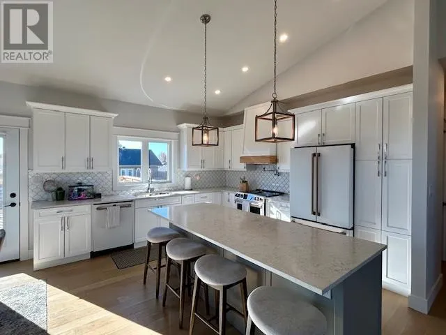 This absolutely stunning custom built home boasts an open concept living area featuring 13′ high vaulted ceilings, beautiful white oak flooring throughout and garden doors off the dining area to a south facing sundeck. The well thought out kitchen design is complete with white quartz countertops, a large island for entertaining, ample storage and a custom pot filler.