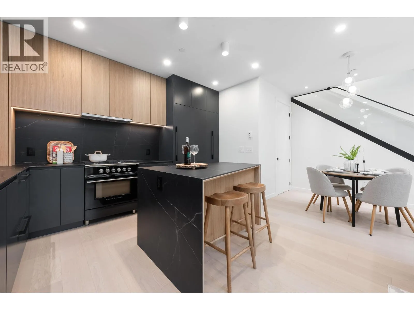 Welcome to this stunning 3 bed, 2.5 bath designer duplex in the heart of Kitsilano. Thoughtfully crafted by Architrix with interiors by PTL Design, this home features premium integrated appliances, radiant in-floor heating (4 zones), A/C with Nest, and Caesarstone & Vicostone surfaces. The sleek kitchen showcases custom millwork and a luxurious black porcelain island. Enjoy elegant lighting by Bocci,