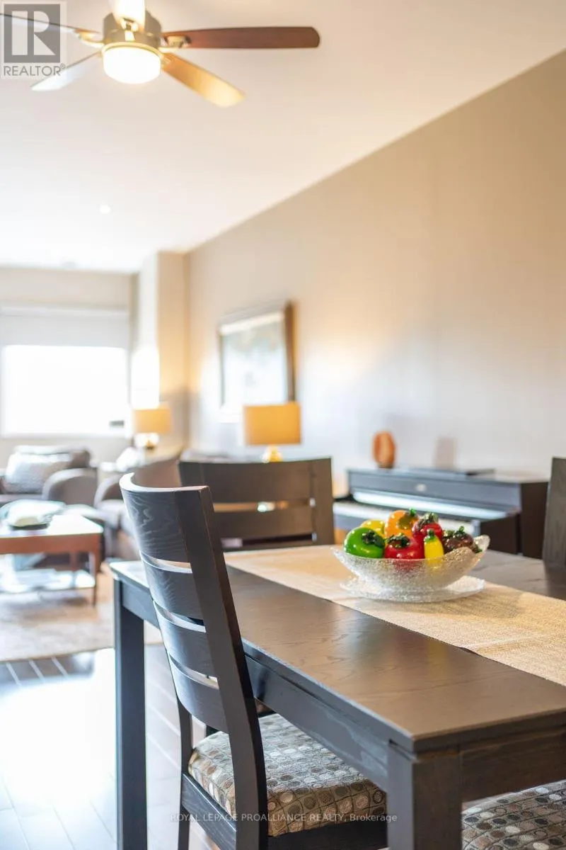 +"PublicRemarks": "Welcome to the epitome of urban luxury at Century Place! Located in the vibrant heart of Belleville. This exceptional fourth-floor condo is an oasis of style and convenience, offering an unparalleled living experience just steps away from the city's finest restaurants, chic boutiques, bustling farmer's market and new memorial arena renovation providing new shops. Upon entering this meticulously maintained residence, you're greeted by an open-concept living area that seamlessly combines elegance and functionality. The unit features one bedroom plus a den, including a serene master suite with a lavish on-suite. The heart of the home is the stunning kitchen, outfitted with sleek cabinetry, a substantial island, and luxurious quartz surfaces. The adjoining living and dining spaces are bathed in natural light, thanks to expansive panoramic windows offering breathtaking views of the Marketplace and Belleville Armories. The unit also includes convenient in-suite laundry. Century Place enhances your lifestyle with an array of exclusive amenities. Enjoy the vibrant rooftop deck with its gas BBQ and stunning city views, or host gatherings in the well-appointed common room with a full kitchen and entertaining spaces. The building also boasts secure access, a private fitness center, and a charming cafe and wine bar on the lower levels. With its prime location, luxurious features, and exceptional amenities, this condo at Century Place is perfect for executive couples, retirees, or anyone seeking a sophisticated and carefree urban lifestyle. **EXTRAS** 1112 SQ FT (38 units total on 3rd,4th, and 5th floor of Century Village) Water Incl. in maintenance fees. Avg. Hydro incl. Heat $85/month. Elevators, Heated underground parking. All fixtures upgraded, New Bosch dishwasher, quartz counters (id:62650)"