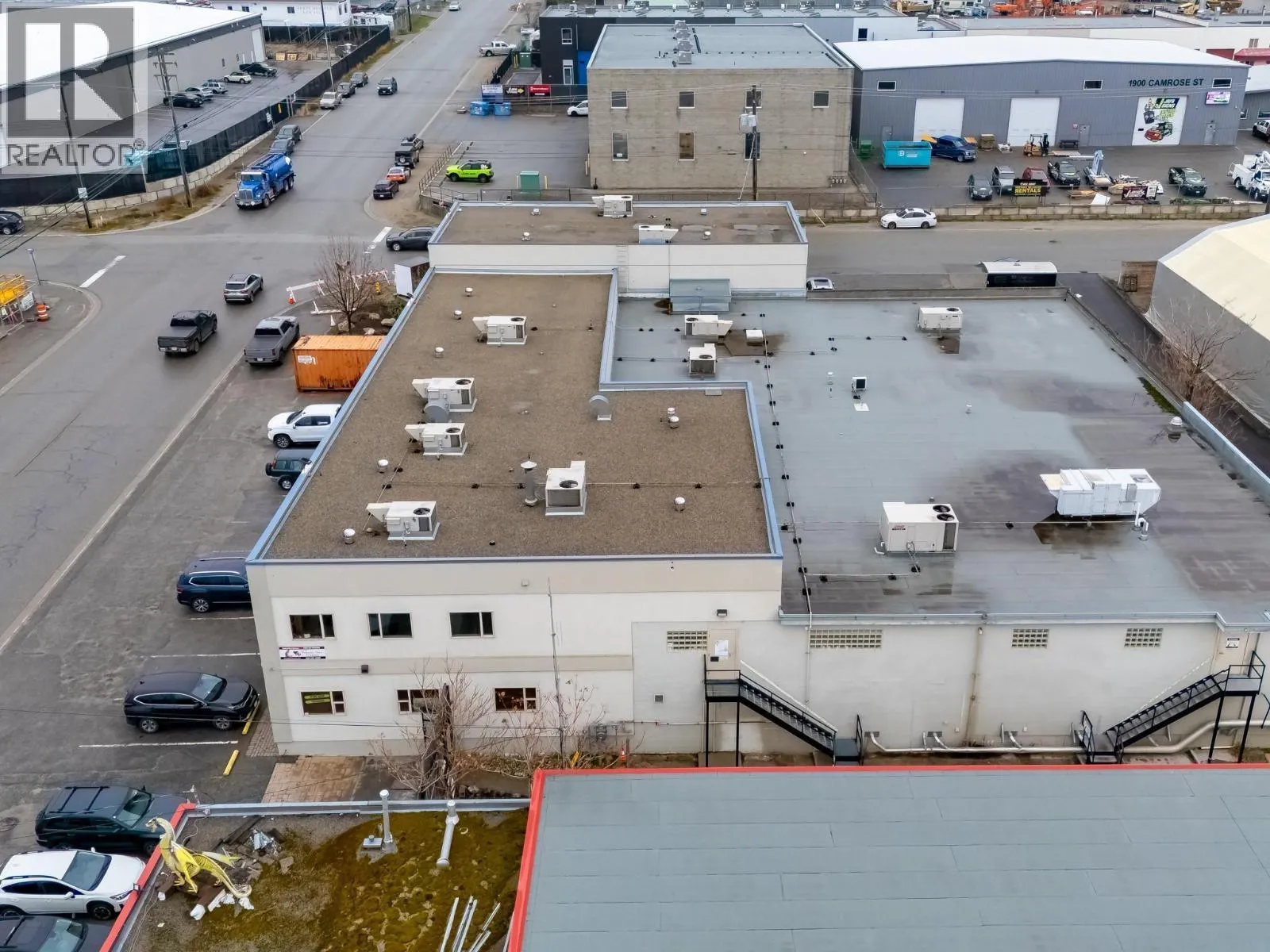 High-Profile Corner Investment Property. Exceptional opportunity to acquire a prominently positioned commercial building fronting both Okanagan Avenue and Camrose Street. This property has undergone extensive renovations over the past four years, with reported improvements totaling approximately $1.2 million. Offering 33,784 square feet of gross leasable area on a flat 0.68-acre parcel, this M1-zoned (Mixed Urban Centre Commercial) property accommodates a