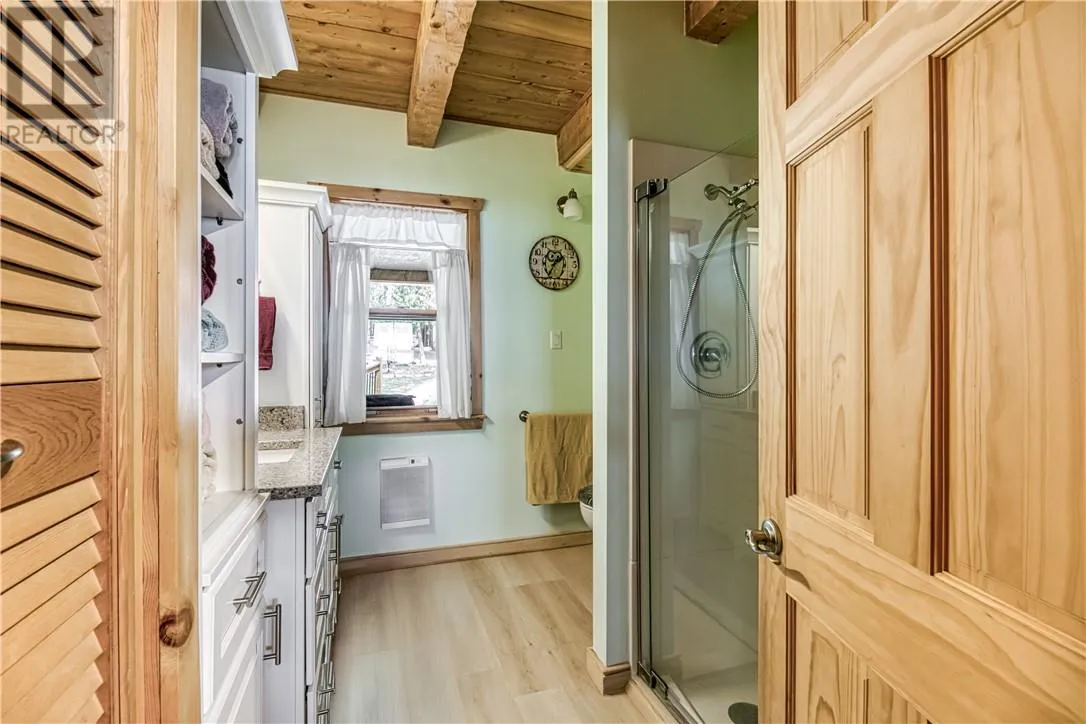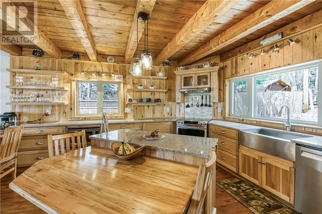 Welcome to 33 Dominion Park Drive, tucked away on a large beautiful treed lot along the pristine North Shores of Lake Huron. This exceptional post and beam custom built home offers an unmatched blend of comfort, craftsmanship, and natural beauty. With its own wide stretch of soft, sandy beach and unobstructed south-facing views, you’ll experience everything from warm sunrises to