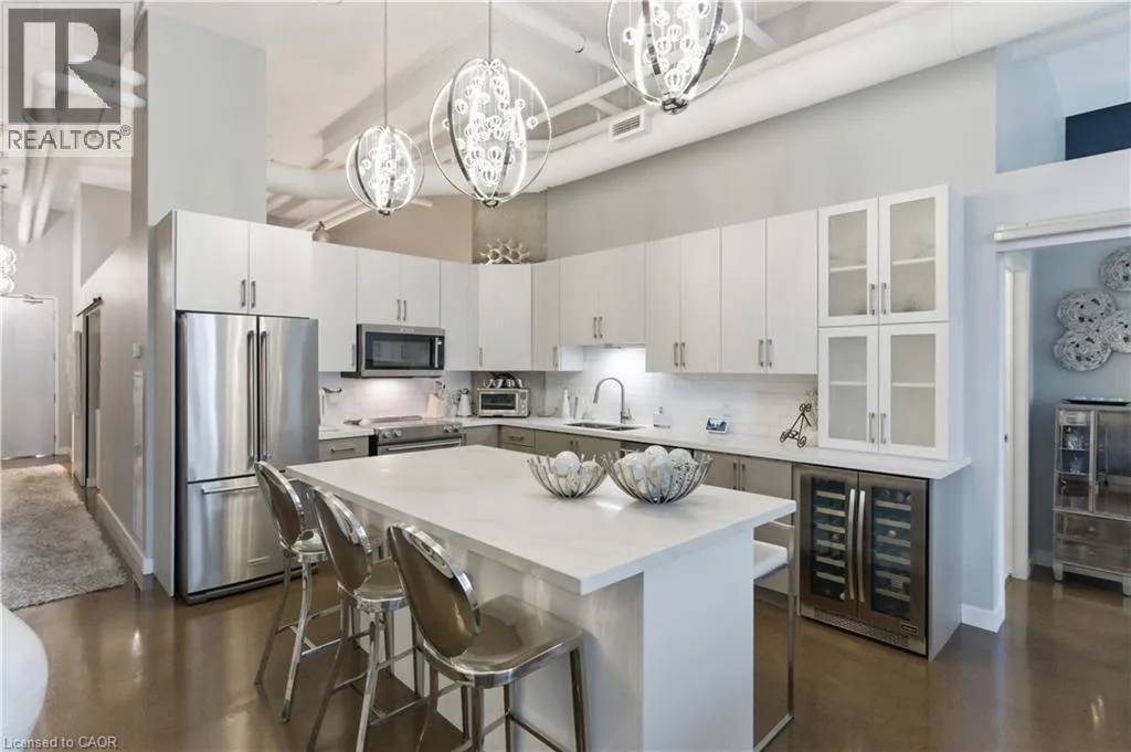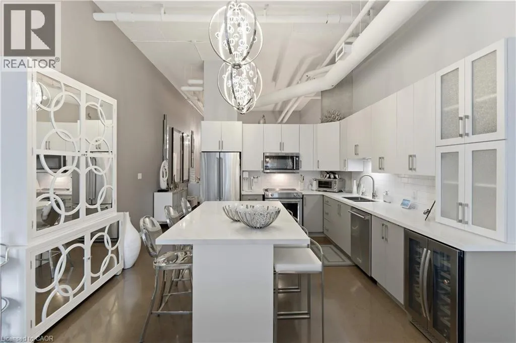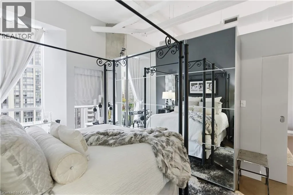 Welcome to Core Lofts – Hamilton’s premier loft condominium, ideally situated in the city’s coveted Durand neighbourhood. Once a former Bell Canada office building, this landmark conversion seamlessly blends industrial character w/ sophisticated urban design. This exceptional 1143 sq ft, 2-bdrm, 2-bath penthouse offers an elevated living experience w/ western exposure. Polished concrete floors, soaring 12.5′ ceil & expansive windows
