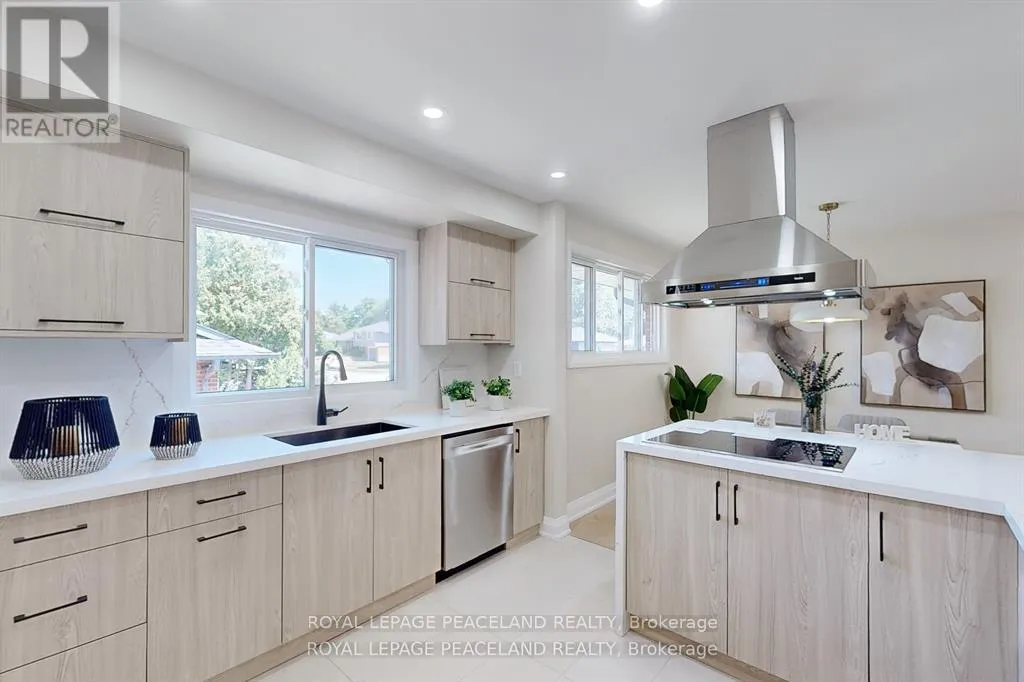 Fully renovated, open concept, 3-bedroom home in Central Oakville. Total New renovation from bottom to the top, new bathrooms, Custom kitchen, granite countertops and large island, stainless steel appliances with Cock Top, pot lights, fireplace, hardwood floors and tile throughout and new high-efficiency front & rear entry doors, NEW windows, Separate entrance 3-piece bathroom in the basement. Close