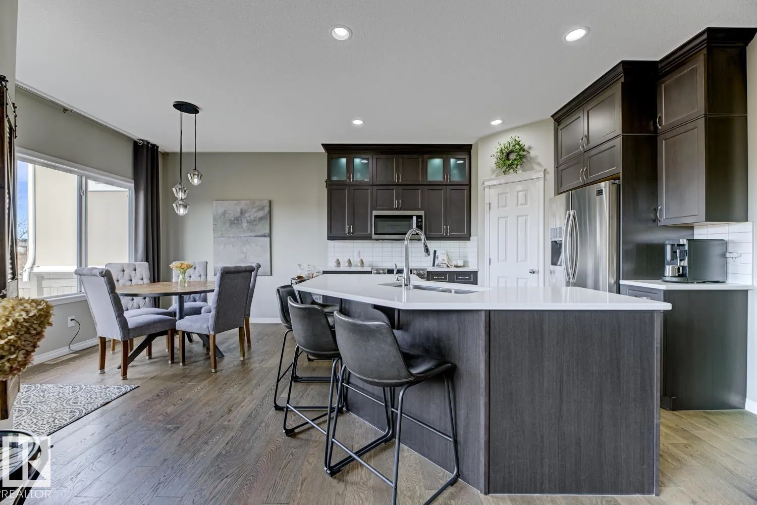 This perfectly maintained Montorio-built home in Trumpeter is the complete package—over 1800 sq ft of stylish living, a beautifully finished basement, and an incredible TRIPLE TANDEM GARAGE! Nestled on a quiet cul-de-sac , BACKING ONTO SCENIC GREENSPACE, it offers sweeping year-round views and a peaceful connection to nature. Inside, enjoy 9-ft ceilings, quartz counters, a corner pantry, under-cabinet lighting, and