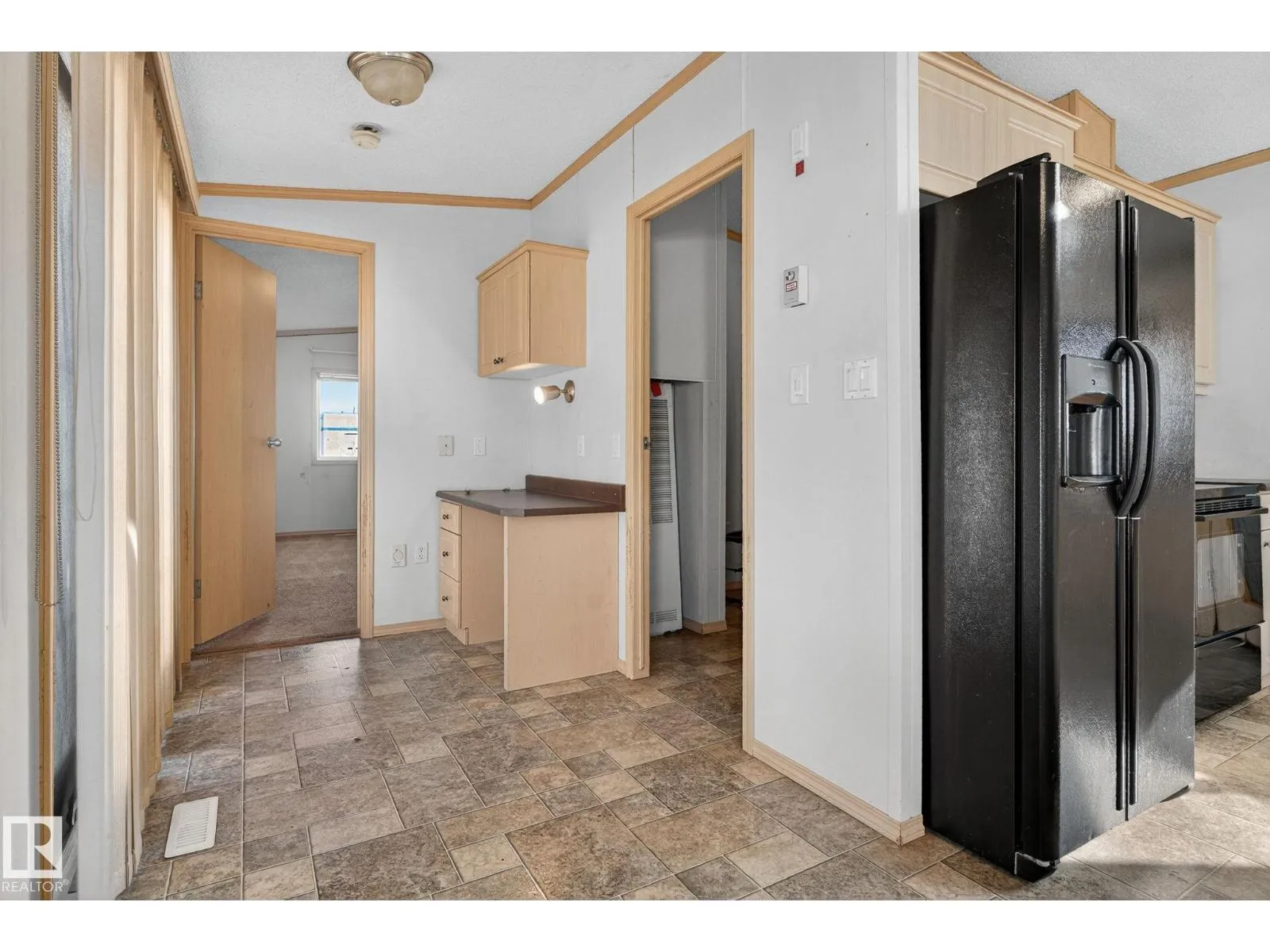 Welcome to this beautiful 1520 Sq ft manufactured home. Ideally located in the heart of Leduc, just minutes from the Edmonton International Airport, QE2 Highway, shops, and all major amenities. Step inside to an inviting open-concept layout featuring a bright kitchen with two large skylights that flood the space with natural light. The kitchen seamlessly flows into the spacious living