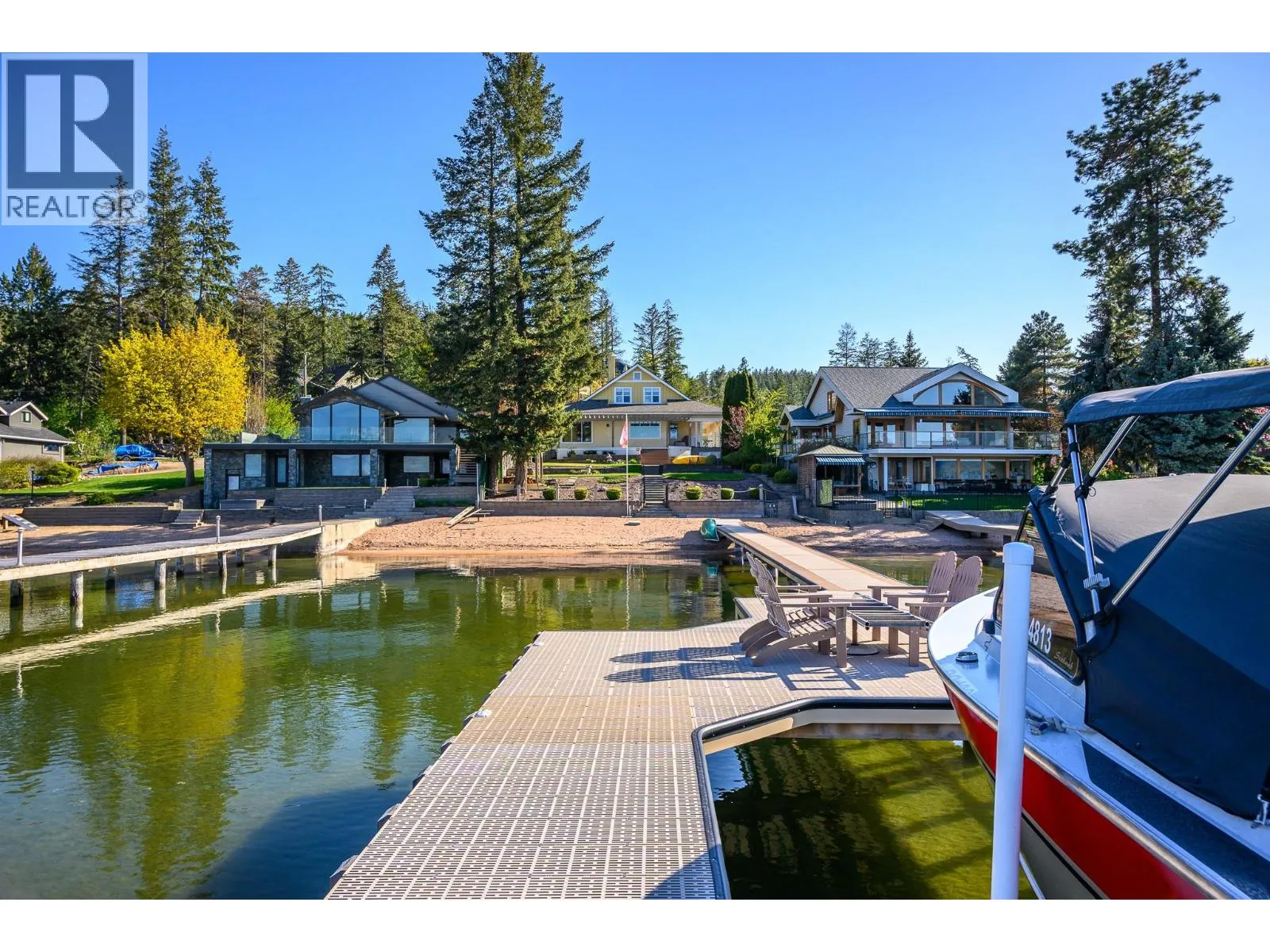 Historic Waterfront Estate with Royal Ties – Once host to Queen Elizabeth herself, this 1908 treasure offers rare privacy, timeless elegance, and an unmatched Okanagan Lake setting. A classic, welcoming porch wraps around the home to the lake front deck. Nestled between two bays with63 ft of sandy beachfront, enjoy panoramic lake views all the way to Crystal Waters Bay