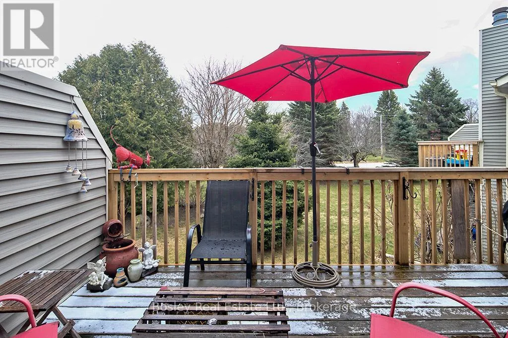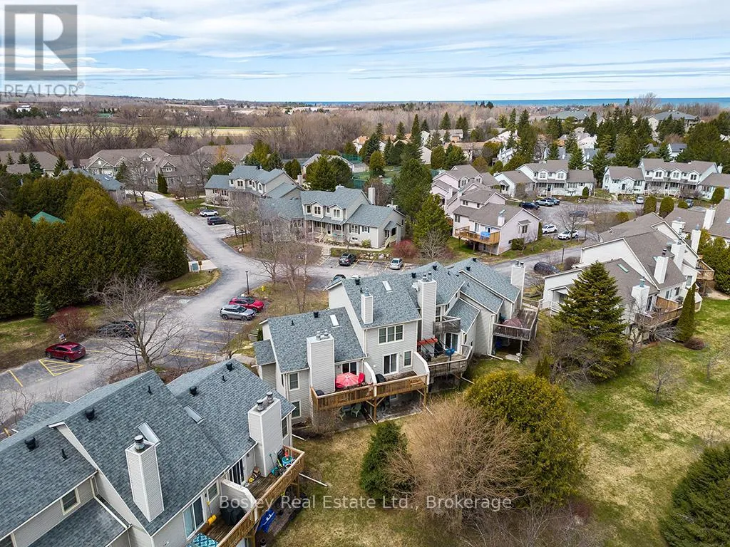 Main Floor Living in the Heart of Thornbury! Well-maintained 2-bedroom Applejack condo offering bright, functional living with a walk-out basement and private backyard. Freshly painted and filled with natural light, this home features an open-concept main floor with vaulted ceilings, a skylight, and a cozy gas fireplace. Walk out to a private deck overlooking mature trees and peaceful green space,