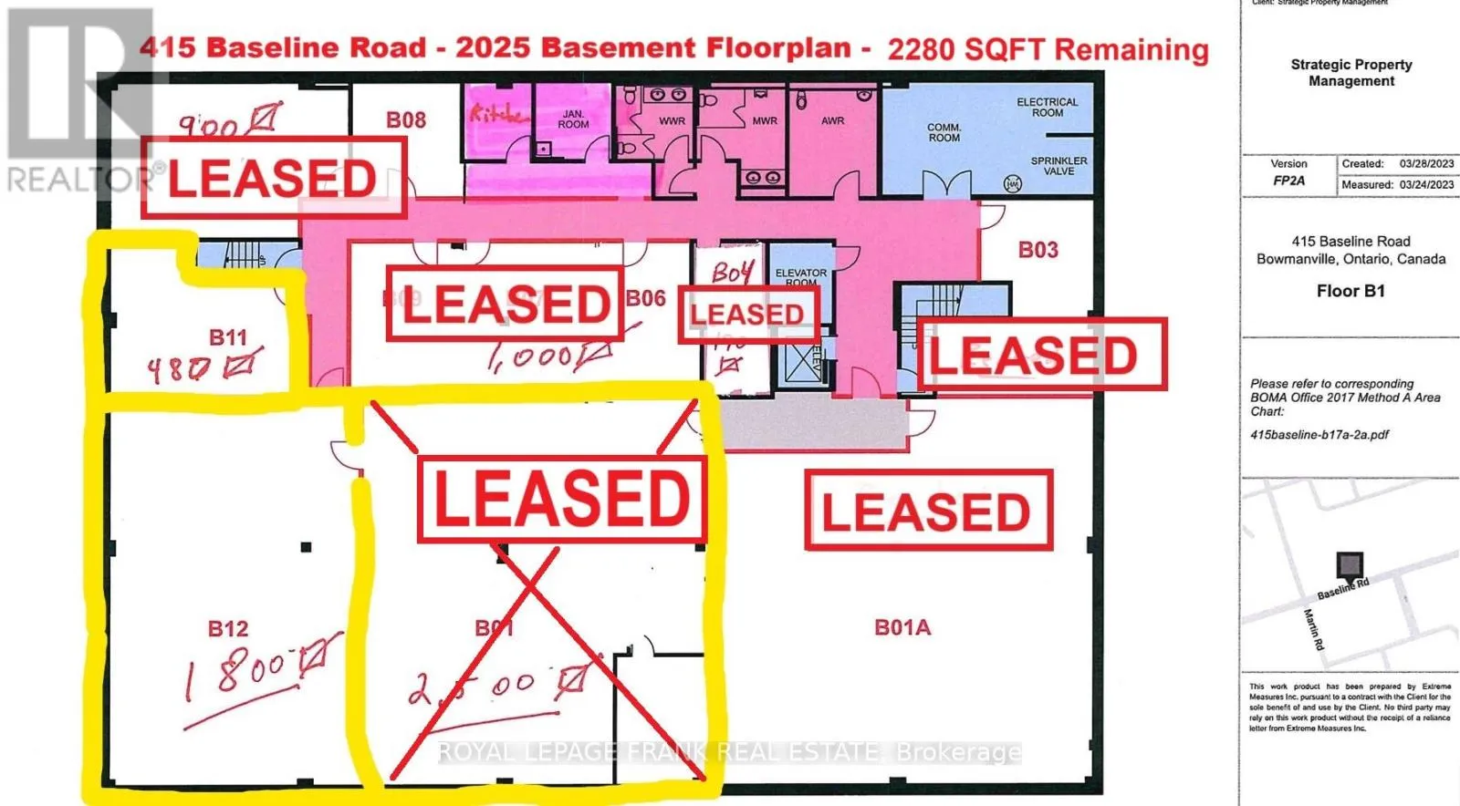 Client RemarksVariety of exceptionally well maintained and renovated + accessible basement office suites at convenient 415 Baseline Rd. location in Bowmanville. Zoning supports both office and commercial uses for flexibility suitable for a variety of businesses. Common elevator + bathroms for Tenant convenience. Spacious parking lot + close to Hwy. 401. Affordable rent rate inclusive of utilities. Please see floorplan