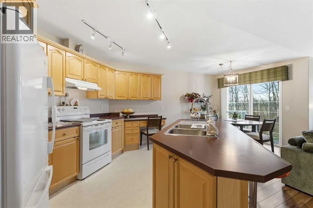 +"PublicRemarks": "Wonderful opportunity in the peaceful 55-plus community of Prince of Peace Village!This lovely villa-style duplex is all about comfort, calm, and connection with nature. Freshly painted and well maintained, it’s ready for you to move in and start enjoying a relaxed, low-maintenance lifestyle.Step inside and you’ll instantly feel the airy space created by high vaulted ceilings and big sunny windows that frame a beautiful backdrop of mature trees. The open-concept layout allows the kitchen, dining, and living areas to flow together seamlessly, perfect for quiet mornings or friendly get-togethers. The kitchen island is a natural hangout spot, and the cozy gas fireplace adds warmth and charm on chilly days.The main floor has everything you need, including convenient laundry. The primary bedroom feels bright and open with its vaulted ceiling, and the easy-access ensuite shower is a thoughtful touch. There’s also a second bedroom that’s ideal for guests, hobbies, or a home office.Downstairs, the finished lower level gives you plenty of room to spread out, think movie nights, a craft space, or just a comfortable retreat. You’ll also find a third bedroom, a full bath, and generous storage space.Step outside to your west-facing patio, a peaceful place to watch the sunset or spot the occasional deer wandering by. There’s nearby RV parking for those who love to travel south for the winter, just lock up and go without worry!The single attached garage comes with extra storage, and best of all, your condo fees cover lawn care, snow removal, and exterior maintenance, giving you more time to enjoy life.Explore all the walking paths, ponds, gardens, and the many places to sit and relax throughout the Village. Enjoy the amenities of the Clubhouse, take part in community activities, and make the most of the maintenance-free lifestyle that Prince of Peace Village is known for.With quick access to Stoney Trail, Highway 1, and all the shopping and restaurants nearby, this home offers the perfect blend of convenience and tranquility.So if you’re ready to trade weekend chores for easy living, friendly neighbours, and peaceful surroundings, come see this one before it’s gone! (id:62650)"