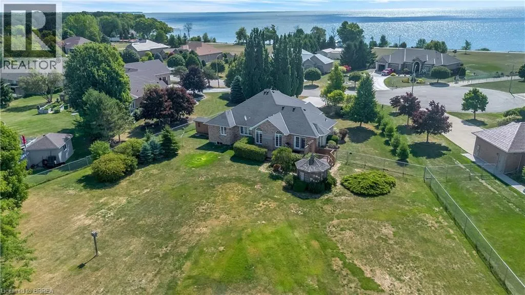 +"PublicRemarks": "This beautiful, custom-built estate bungalow sits on a breathtaking 1.48-acre lot, offering stunning views that make it ideal for those seeking a peaceful lakefront lifestyle. With six bedrooms and four bathrooms, this spacious home is perfect for families or extended family gatherings. The property features a unique pie-shaped lot with views of farm fields to the rear and Lake Erie in the front. You also have convenient access to the lake from the neighbourhood walkway just steps from your front door. On the main level, you'll find an eat-in kitchen, a separate formal dining area, and an open-concept living room complete with a gas fireplace. This level also includes a laundry room with direct access to the two-car garage. The primary suite boasts a luxurious 5-piece en-suite bathroom, a walk-in closet, and large windows that flood the space with natural light. The lower level offers additional living space, including three bedrooms, one full bathroom, and a large den equipped with a negotiable pool table. There’s also a separate entertainment room. This lower level could easily accommodate a second kitchen, perfect for creating an in-law suite. Discover the convenience of a separate garage and workshop at the rear of the property, complete with a drive-in garage door and electrical service. This outstanding property also boasts a reliable backup natural gas fueled generator, ensuring you never miss a beat during power outages. Experience peace of mind and versatility all in one place! Experience the joy of full-time cottage living in this fantastic lakeside home! (id:62650)"