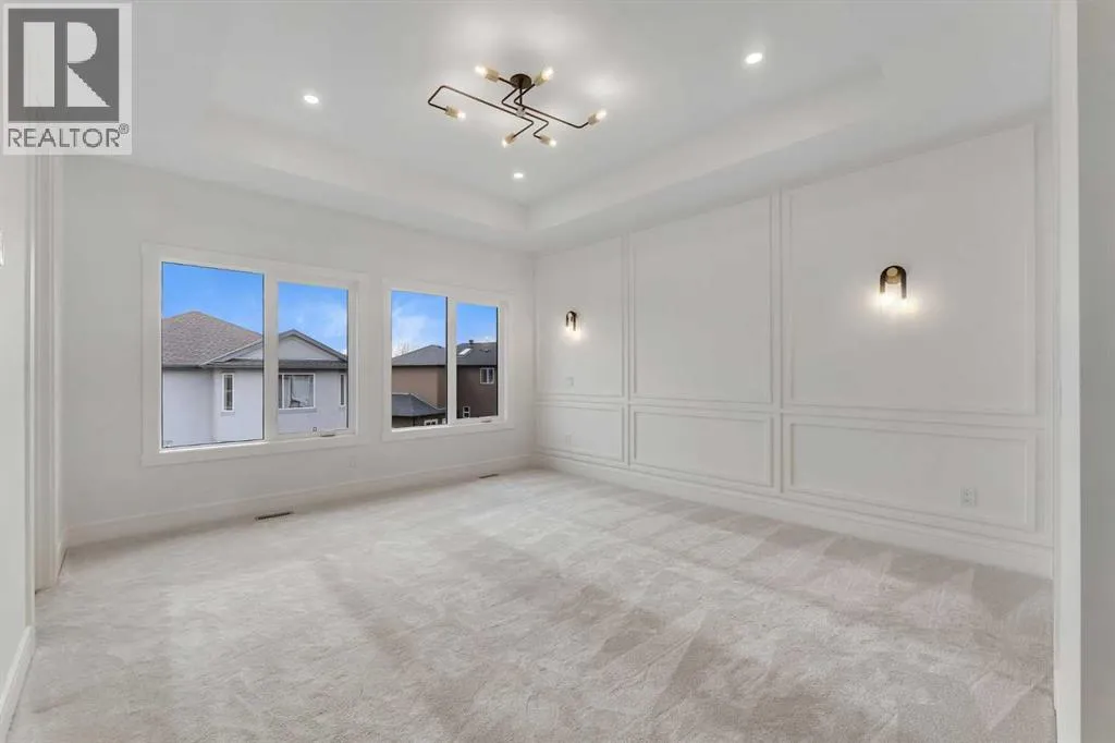 +"PublicRemarks": "Brand New Luxury Walkout Home – Minutes from Chestermere Lake!Stunning brand-new custom-built luxury home offering over 5,100 sqft of living space with high-end finishes. This home features total of 6 BEDROOMS, 6 BATHROOMS and TRIPLE CAR GARAGE. Perfectly situated in a quiet cul-de-sac with a sunny south-facing backyard, this home combines style, space, and functionality. The main floor features soaring 10-ft ceilings, an open-concept layout with a bright living room, formal dining area, spacious family room, and a large main-floor office/den. The chef’s gourmet kitchen boasts quartz countertops, premium stainless-steel appliances, elegant cabinetry, and a separate spice kitchen. A full bathroom and premium flooring complete this level. The upper floor offers four bedrooms, including TWO MASTER SUITES each with luxurious ensuites and walk-in closets, plus two additional bedrooms, a full bathroom, and a large bonus room perfect for family relaxation or entertainment. The fully finished walkout basement is designed for entertaining, featuring a spacious rec room, custom wet bar, two bedrooms, and two full bathrooms — ideal for guests or extended family. (id:62650)"