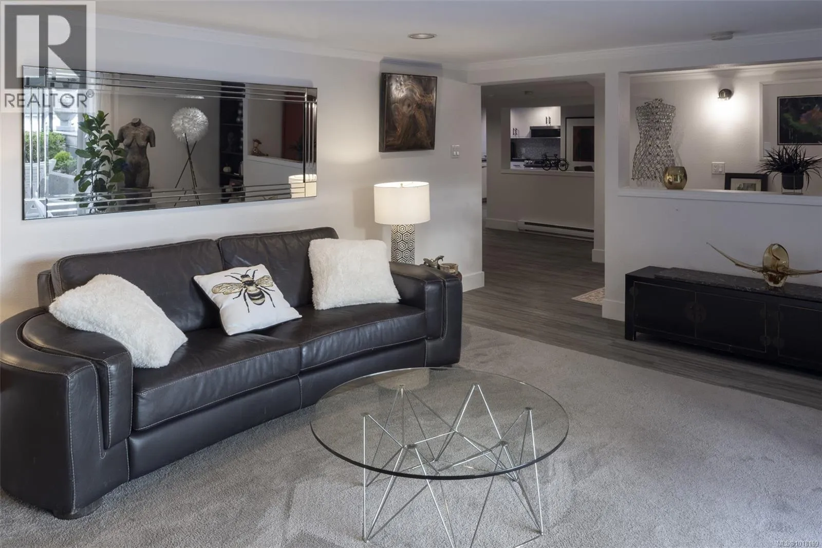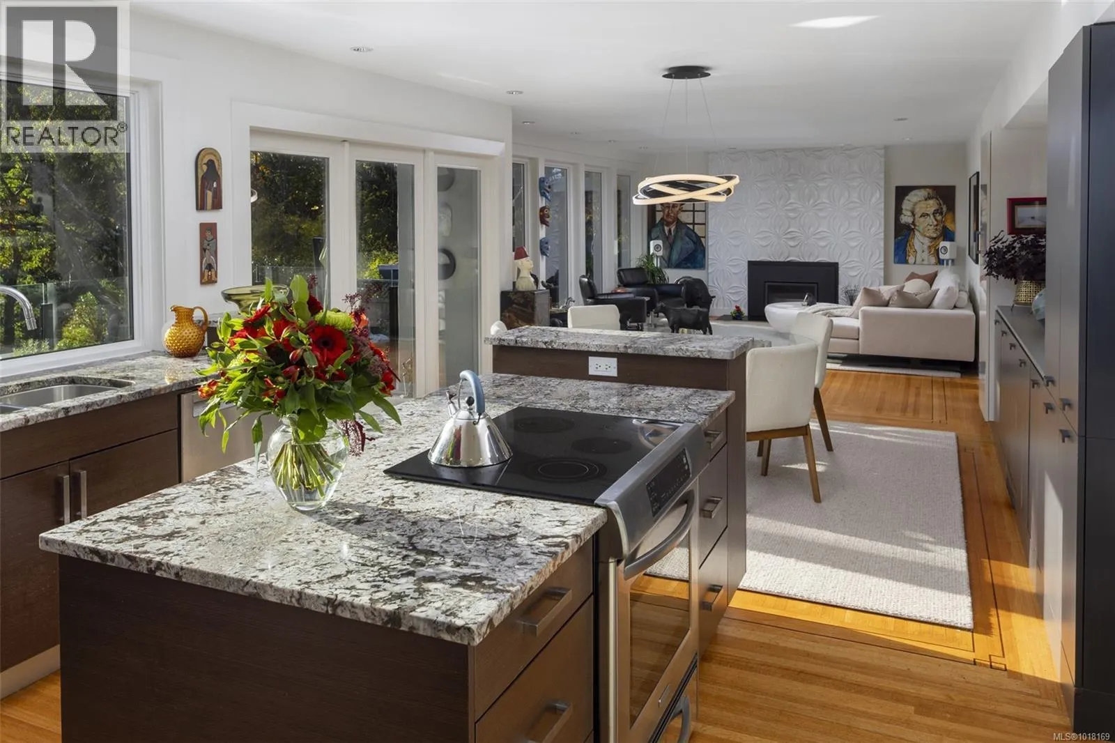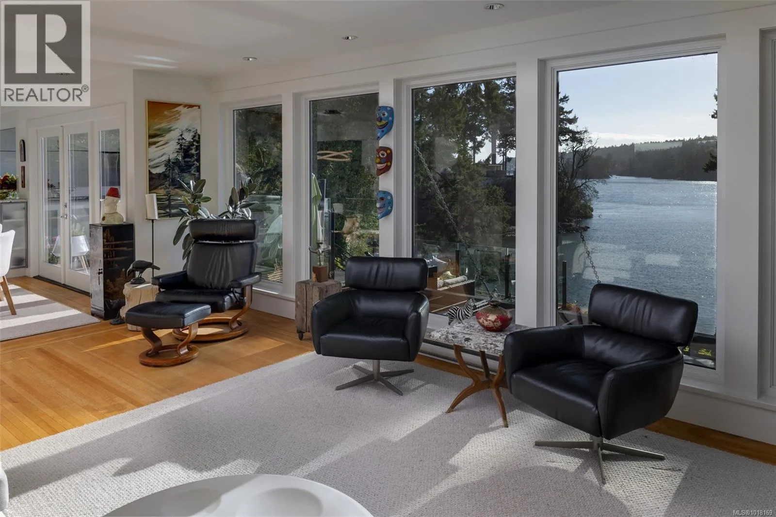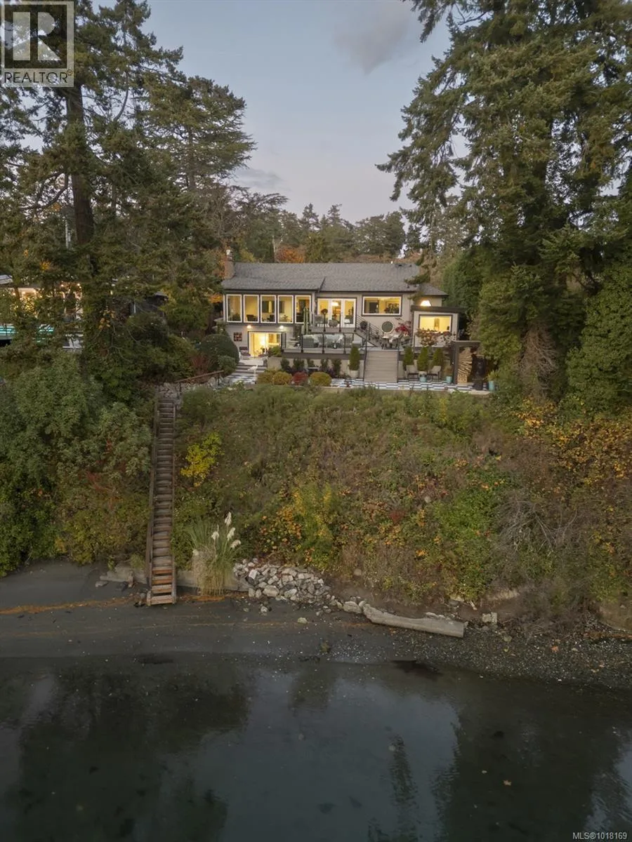 Upscale waterfront oasis! This delightful seaside home has been beautifully renovated & upgraded throughout, offering a bright open-concept design & wonderful views! Located on a private, tree-lined, cul-de-sac, the home offers a peaceful setting with sunny south exposure & access to a sheltered sandy beach. Three bedrooms are located on the main level, & the generous living & dining spaces