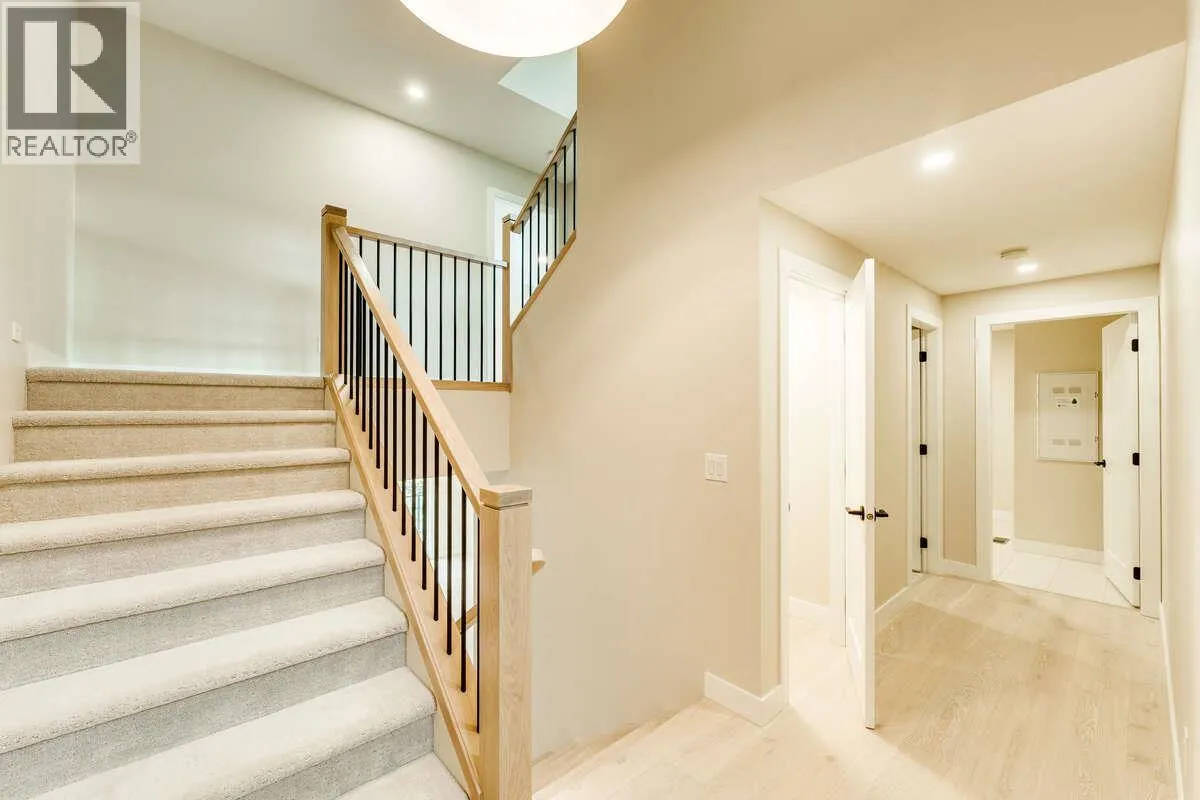 +"PublicRemarks": "RARELY DO YOU SEE BRAND-NEW, STUNNING, MODERN ARCHITECTURE, FAMILY HOME OFFERED FOR SALE IN NORTH GLENMORE! This home is perfect, 8 bedrooms and 7 bathrooms, including a 2-bedroom LEGAL SUITE for rental revenue. The kitchen is a dream and features an ENORMOUS island including Fisher Paykel luxury appliance package, custom high gloss soft close cabinetry, ITALIAN quartz countertops, and a beautiful butler's spice kitchen with KitchenAid appliances. 19ft high ceilings continue throughout the entry and the family room area with 60” linear electric fireplace. Grab a glass of wine or coffee, enjoy the covered deck off the main floor primary bedroom, complete with 3pc ensuite or additional covered deck off the living room. Main floor also includes laundry room, and an office. The second floor primary bedroom is a peaceful retreat offering, large custom walk-in closet, ensuite, dual sinks, free-standing tub, and 6 jet shower. 2 additional bedrooms with shared ensuite, plus a 3rd bedroom with it's own ensuite and large balcony for sweeping valley/mountain views on the 2nd level. The lower-level 2-bedroom suite has private laundry, quartz counters, and full appliance package. The lower level also features a wet bar and additional bedroom and full bathroom for the main house. Plenty of parking with a 2-car garage and massive driveway. Other highlights include central AC, wired for 4 security cameras, custom wood soffits, riobel plumbing fixtures, engineered HWD floors & more. (id:62650)"