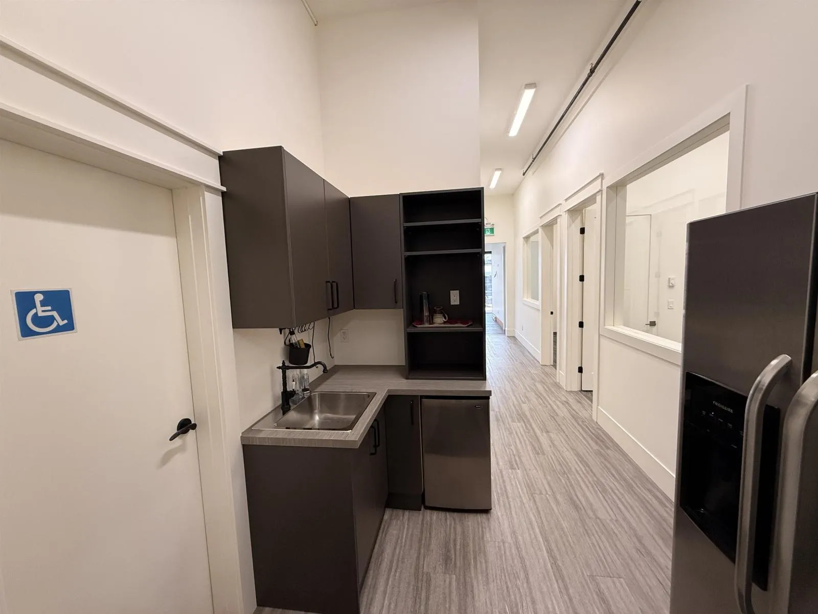 This exceptional property offers high-quality office and warehouse space in a high-traffic area just steps away from the future Willowbrook SkyTrain station. The unit features an open reception/showroom area; six offices; one kitchenette; one washroom; and 1,186 square feet of warehouse space with 12′ ceiling height accessible via a 10′ wide by 10′ high roll-up door. (id:62650)