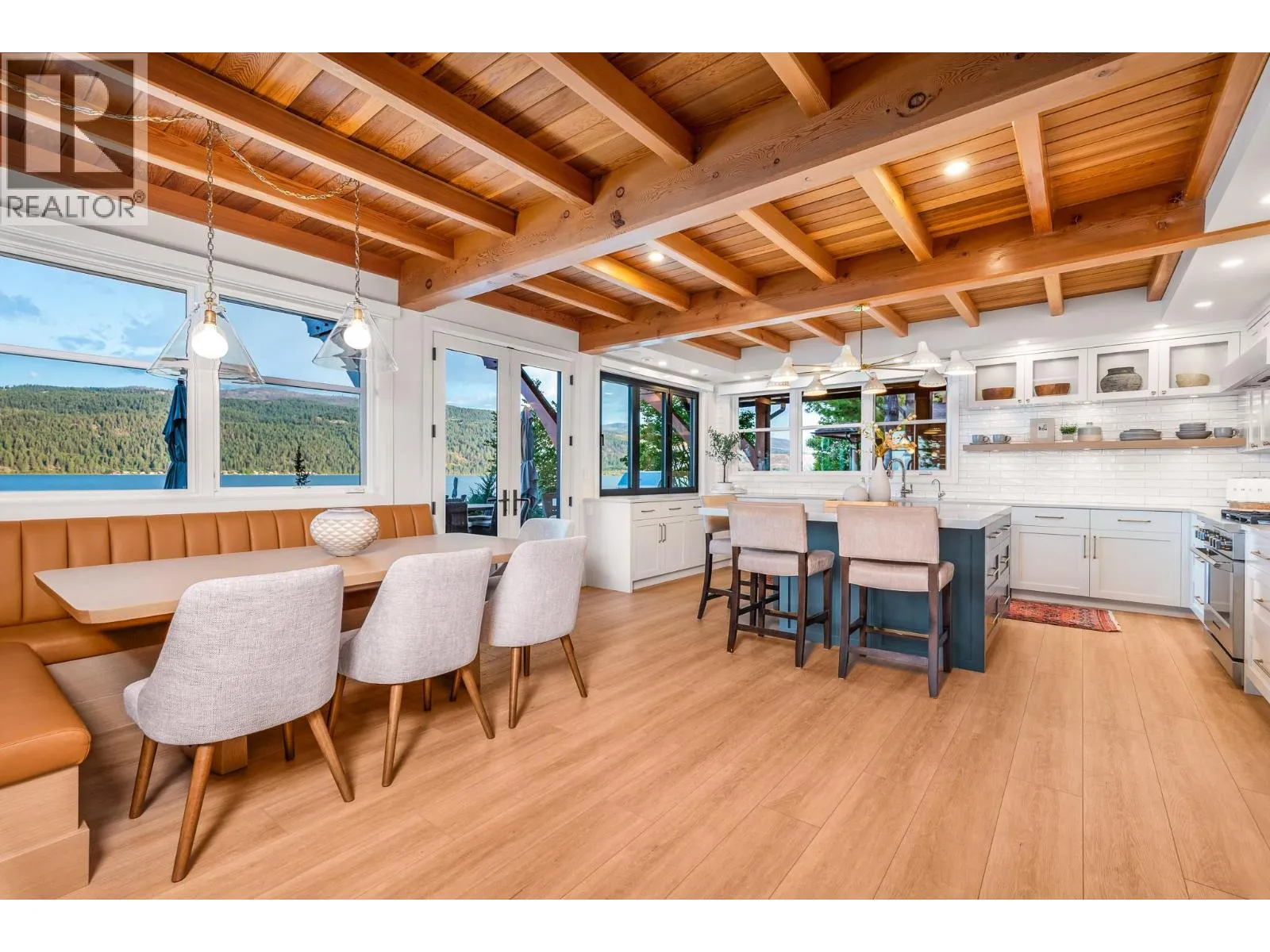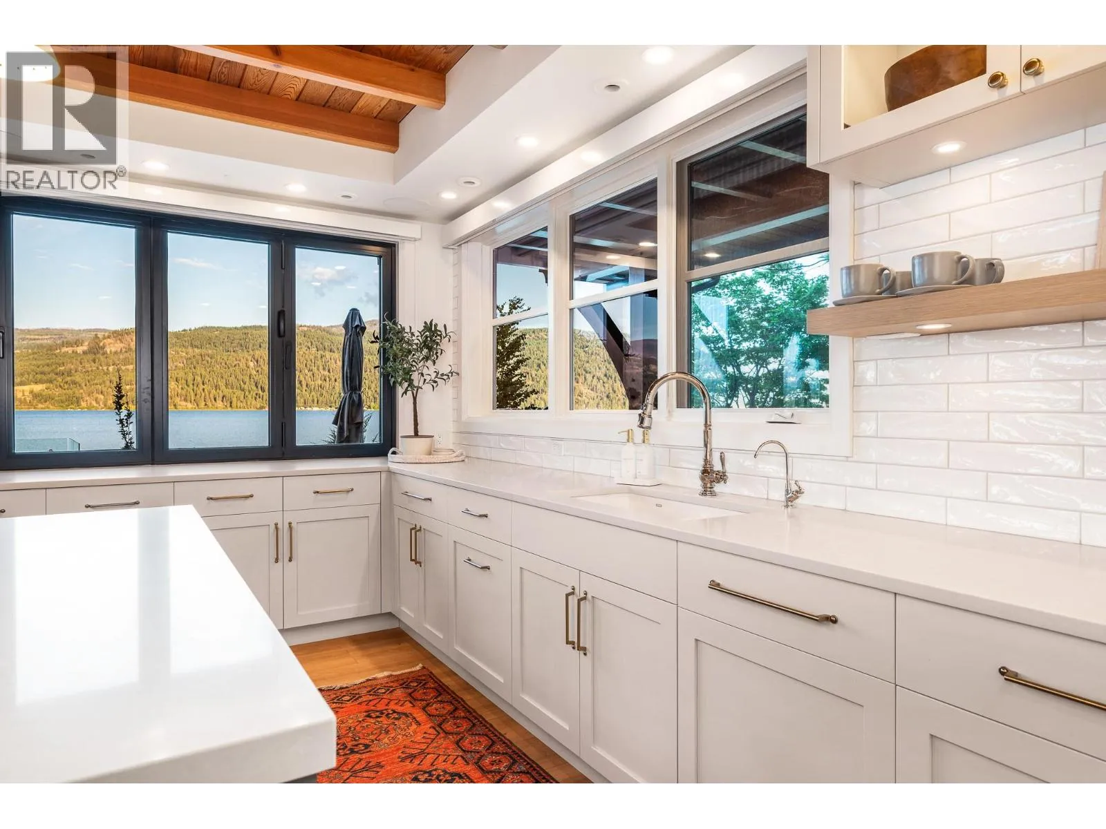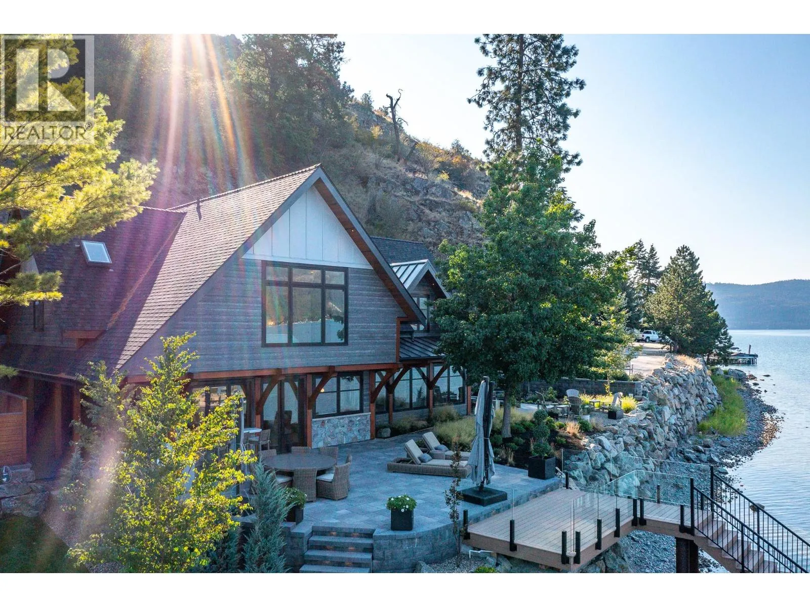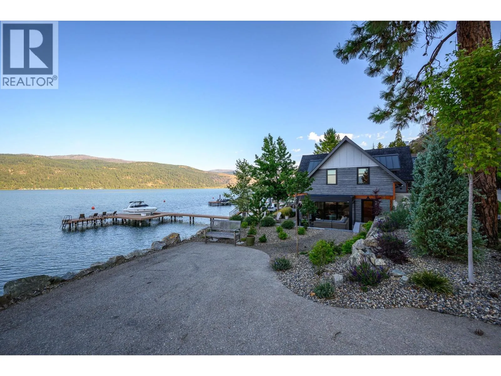 The ultimate “Hampton Beach” waterfront Cottage on Okanagan Lake! Step into the ambiance of this waterfront home, masterfully designed for elegance and comfort. Completely rebuilt in 2023, every inch of this residence is crafted for functionality and lake life enjoyment. The great room features beamed wooden ceilings, luxury vinyl flooring, quartz countertops, in-floor heating, and central cooling. The space is
