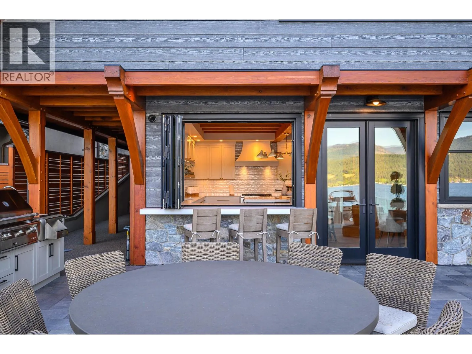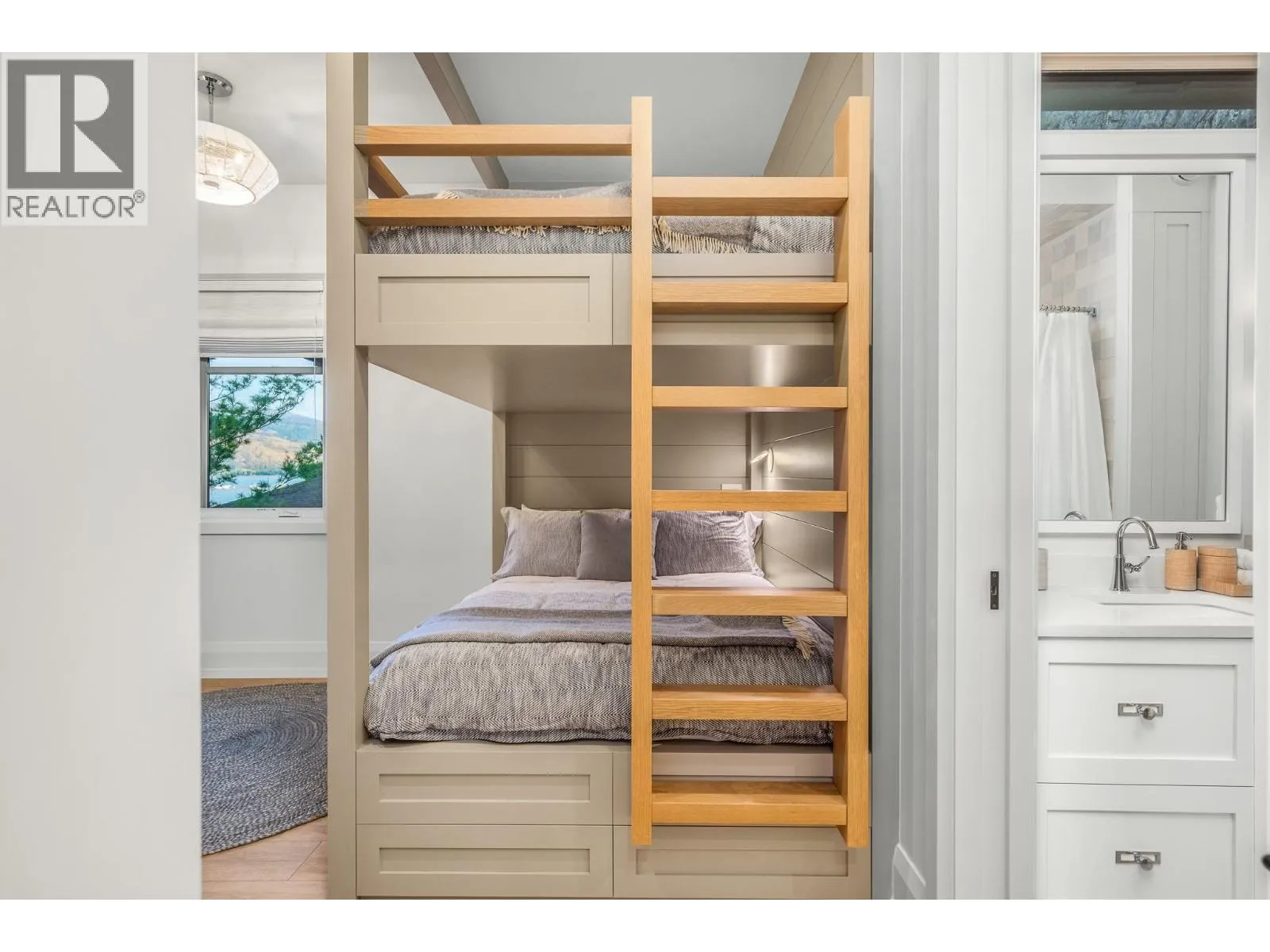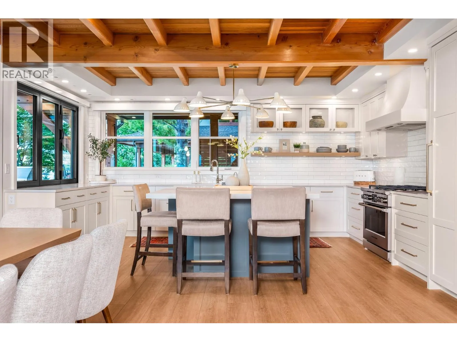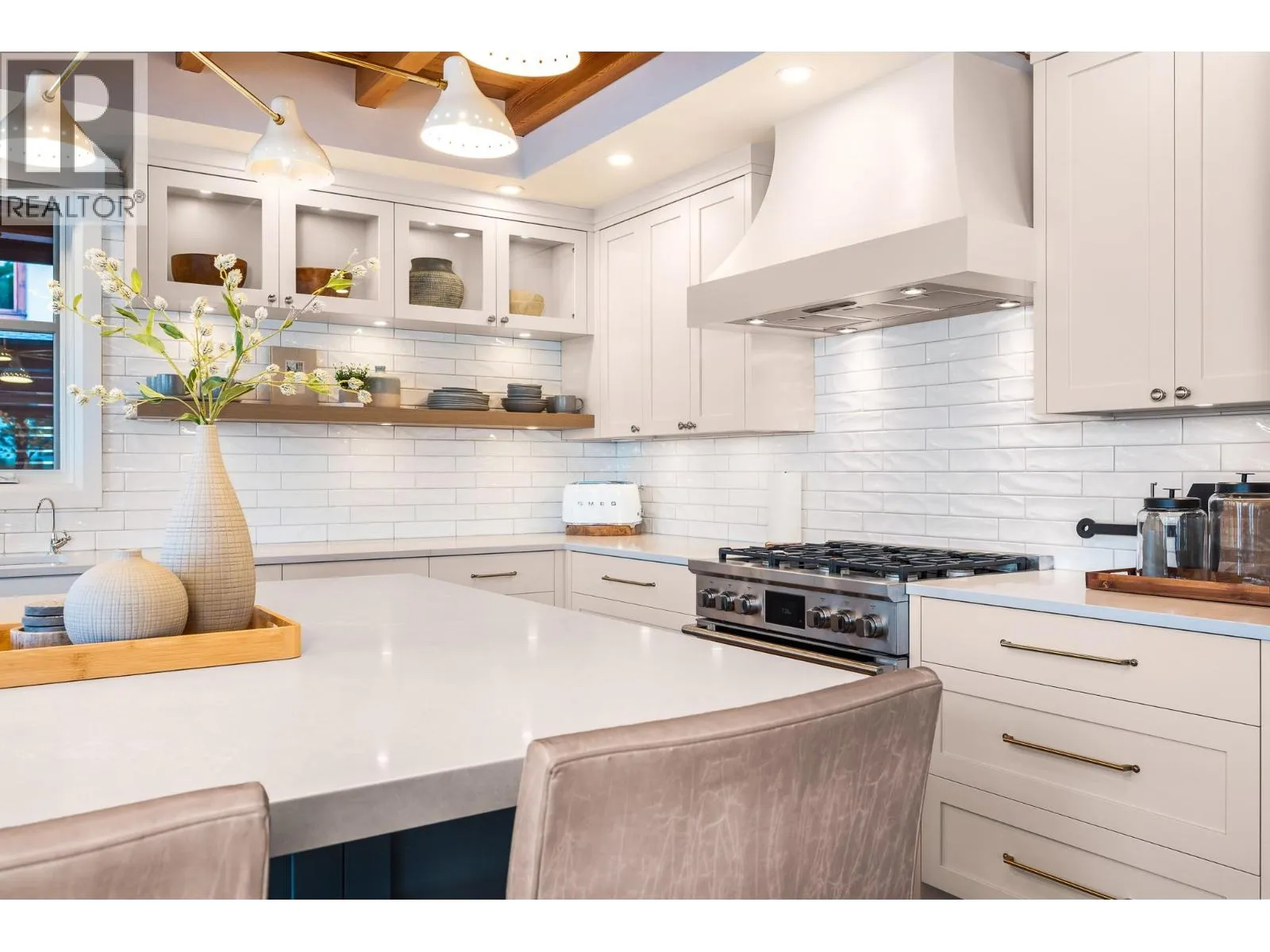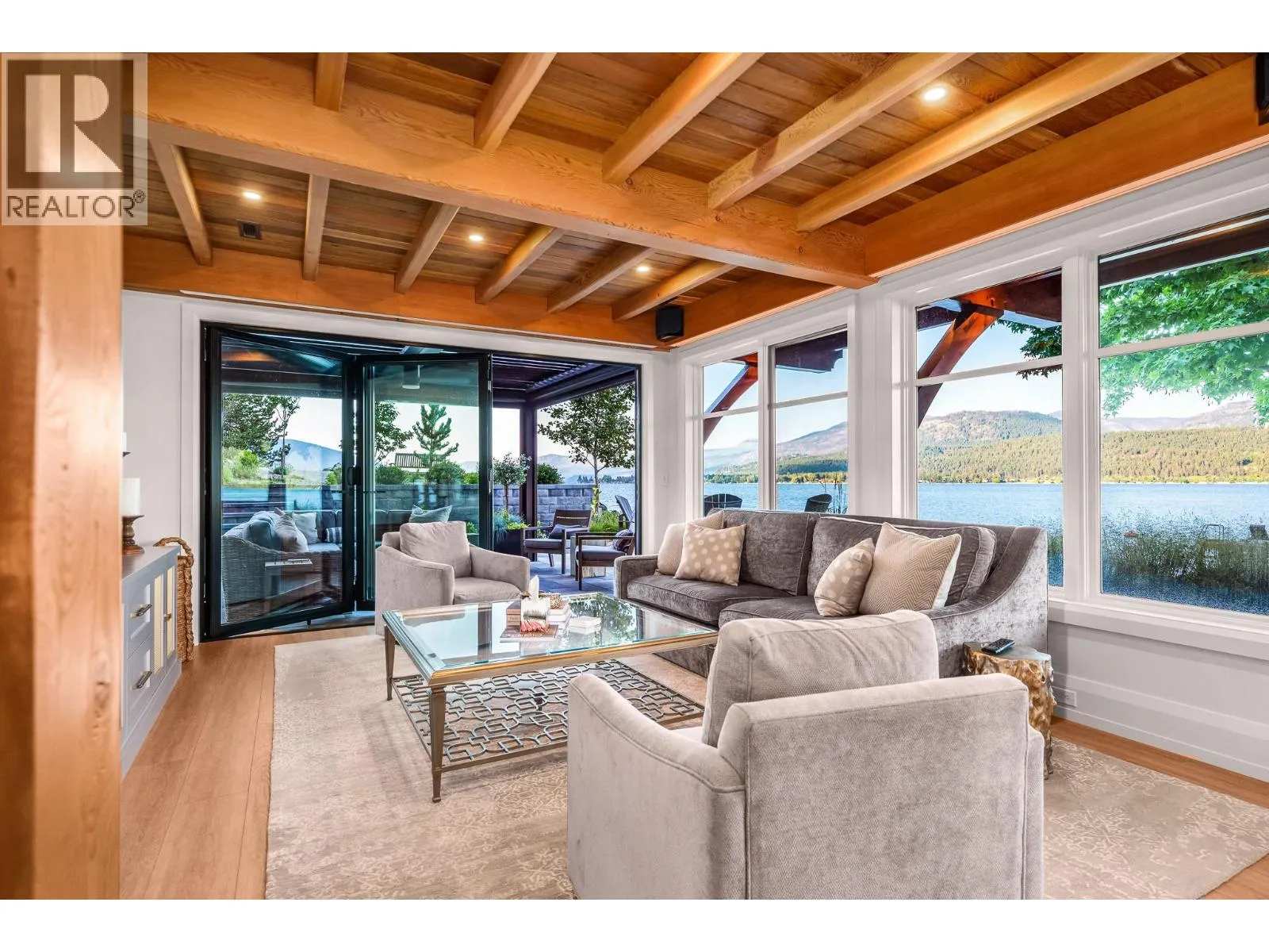 The ultimate “Hampton Beach” waterfront Cottage on Okanagan Lake! Step into the ambiance of this waterfront home, masterfully designed for elegance and comfort. Completely rebuilt in 2023, every inch of this residence is crafted for functionality and lake life enjoyment. The great room features beamed wooden ceilings, luxury vinyl flooring, quartz countertops, in-floor heating, and central cooling. The space is