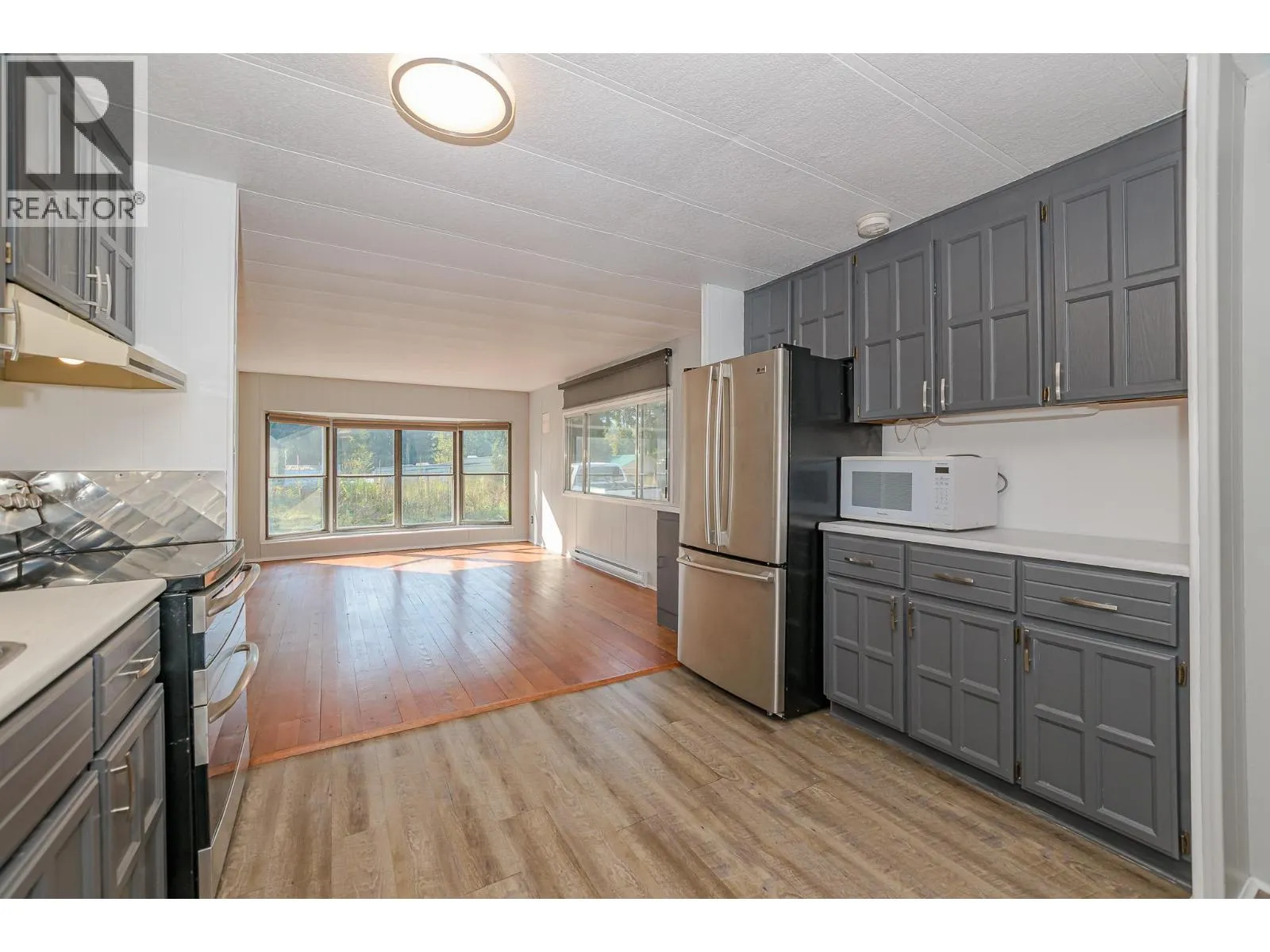 Discover affordable, easy living in this freshly updated manufactured home, nestled at the end of a quiet no-thru road in a peaceful rural setting. Featuring a desirable two-bedroom layout, the home offers a spacious open-concept living, dining, and kitchen area with hardwood flooring in the living room and stylish stainless steel appliances including stove, fridge, washer, and dryer. Recent upgrades