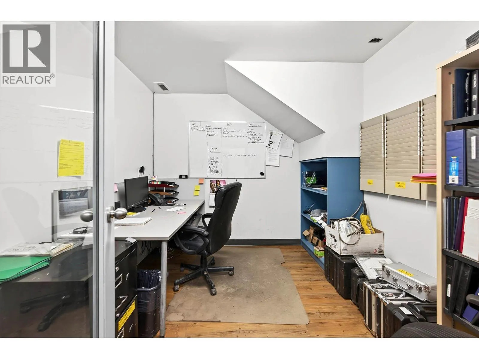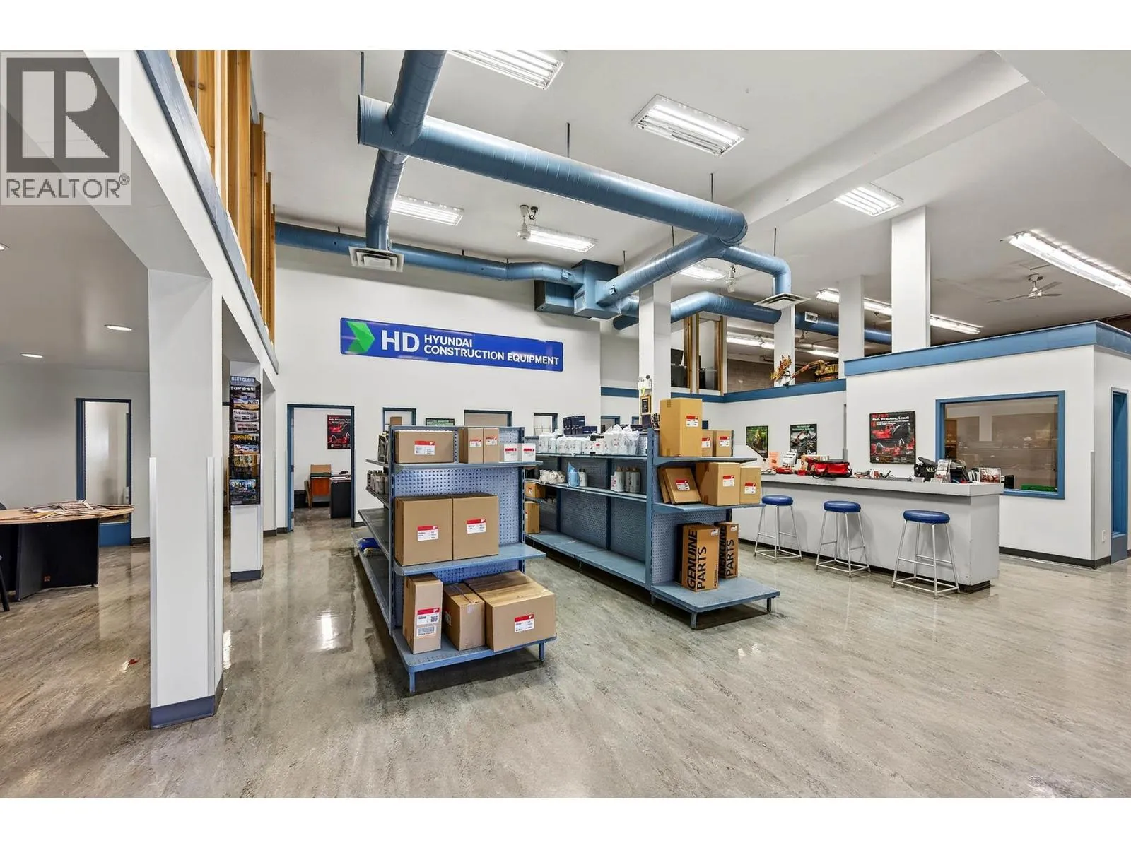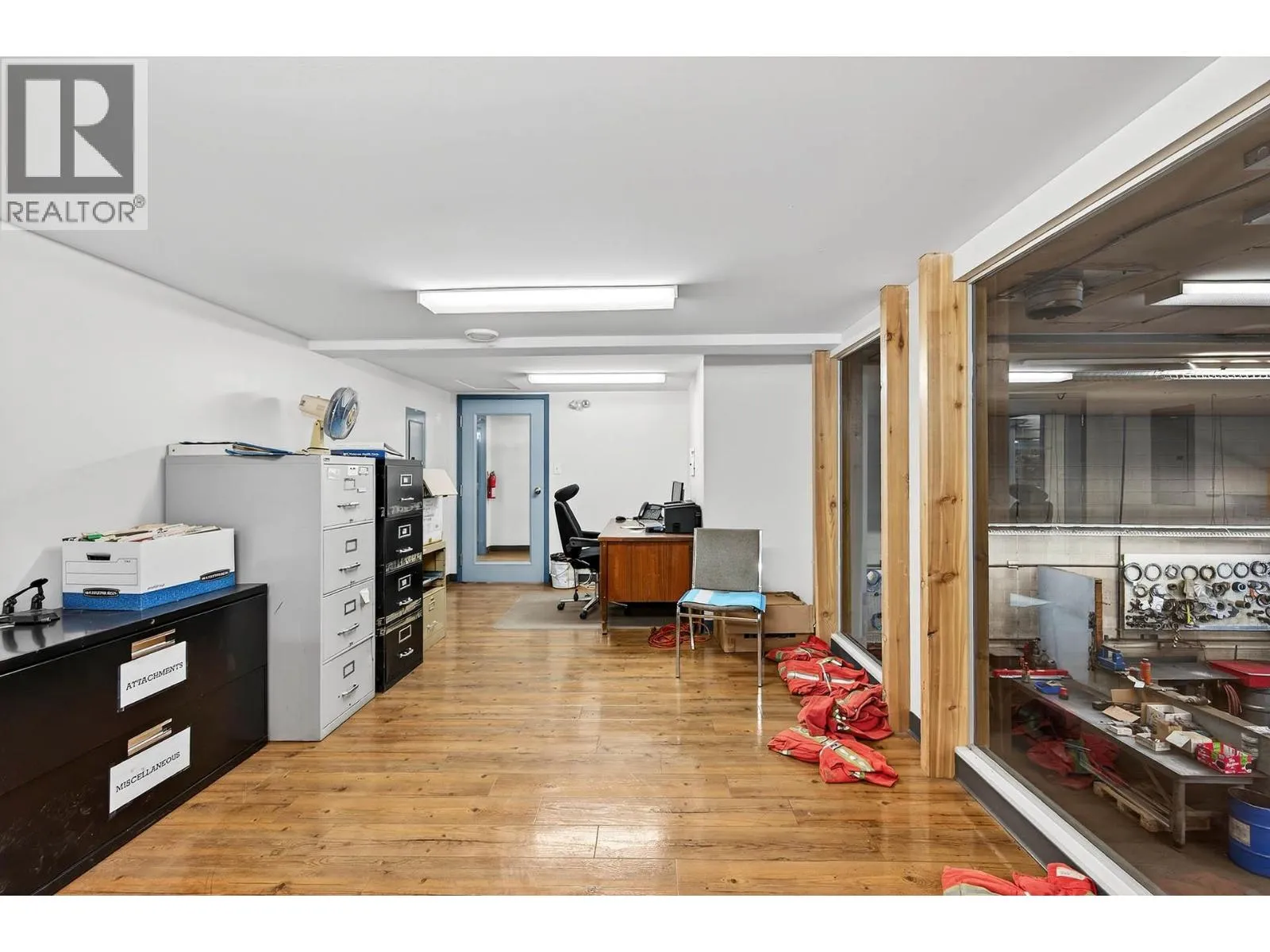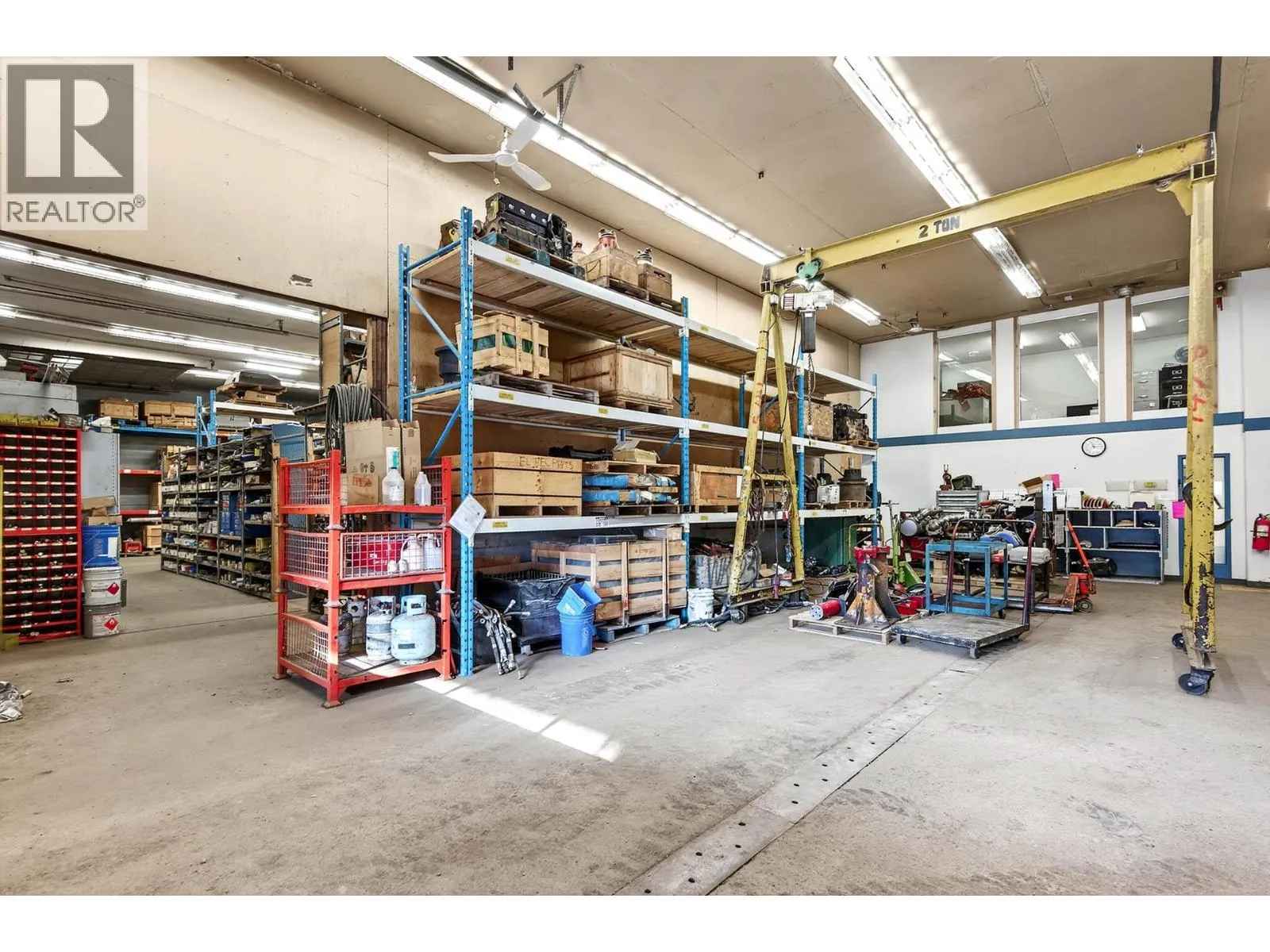 Available January 1, 2026. Light industrial building and land for lease. Easy access from W Trans Canada Hwy to this secured property offering over 17,200 sq. ft. of commercial space and fenced yard area on 1.7 acres. The building is set up with a front service/desk area, several offices, shop area, inventory/storage room, upper mezzanine, drive thru bays, and more.